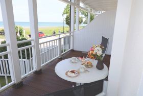 Einige der Appartements begeistern mit einem traumhaften, teilweise unverbaubaren Blick auf die Ostsee, Pkw-Stellplatz am Haus, Balkon mit Ostseeblick, Waschmaschine und Trockner gegen Gebühr im Kellergeschoss, Lift sowie teilweise ein Strandkorb in der Sommersaison. Den Appartements steht WLAN kostenfrei zur Verfügung.