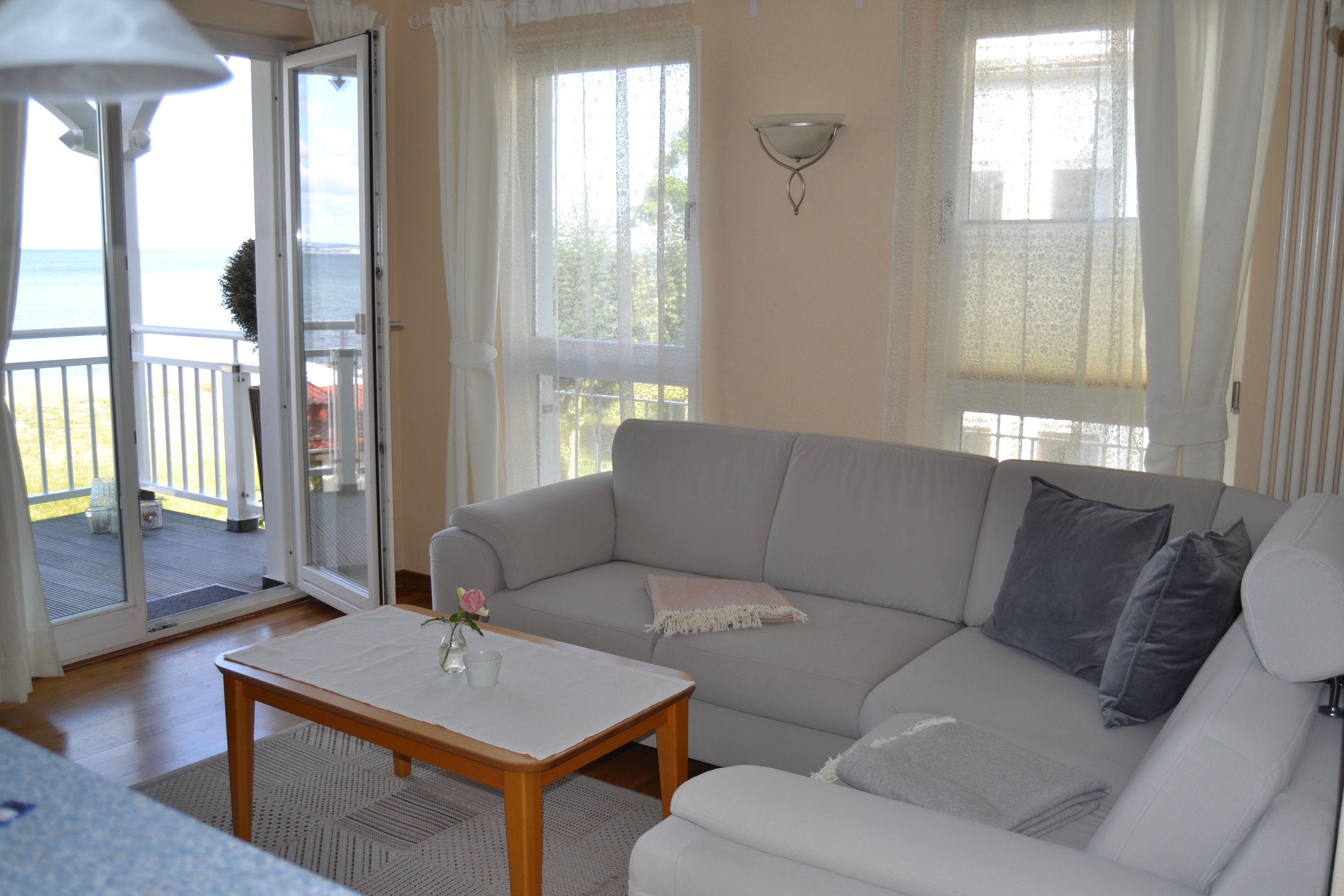 Das 3-Raum-Appartement befindet sich im 1. Obergeschoss und ist für bis zu 4 Personen (2 Erwachsene und 2 Kinder) eignnet. Appartment mit frontalem Meerblick.