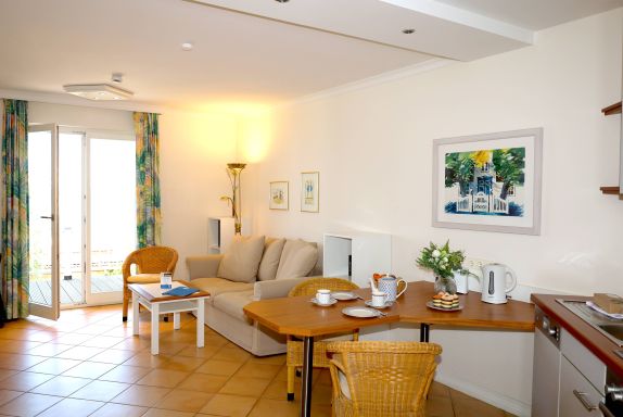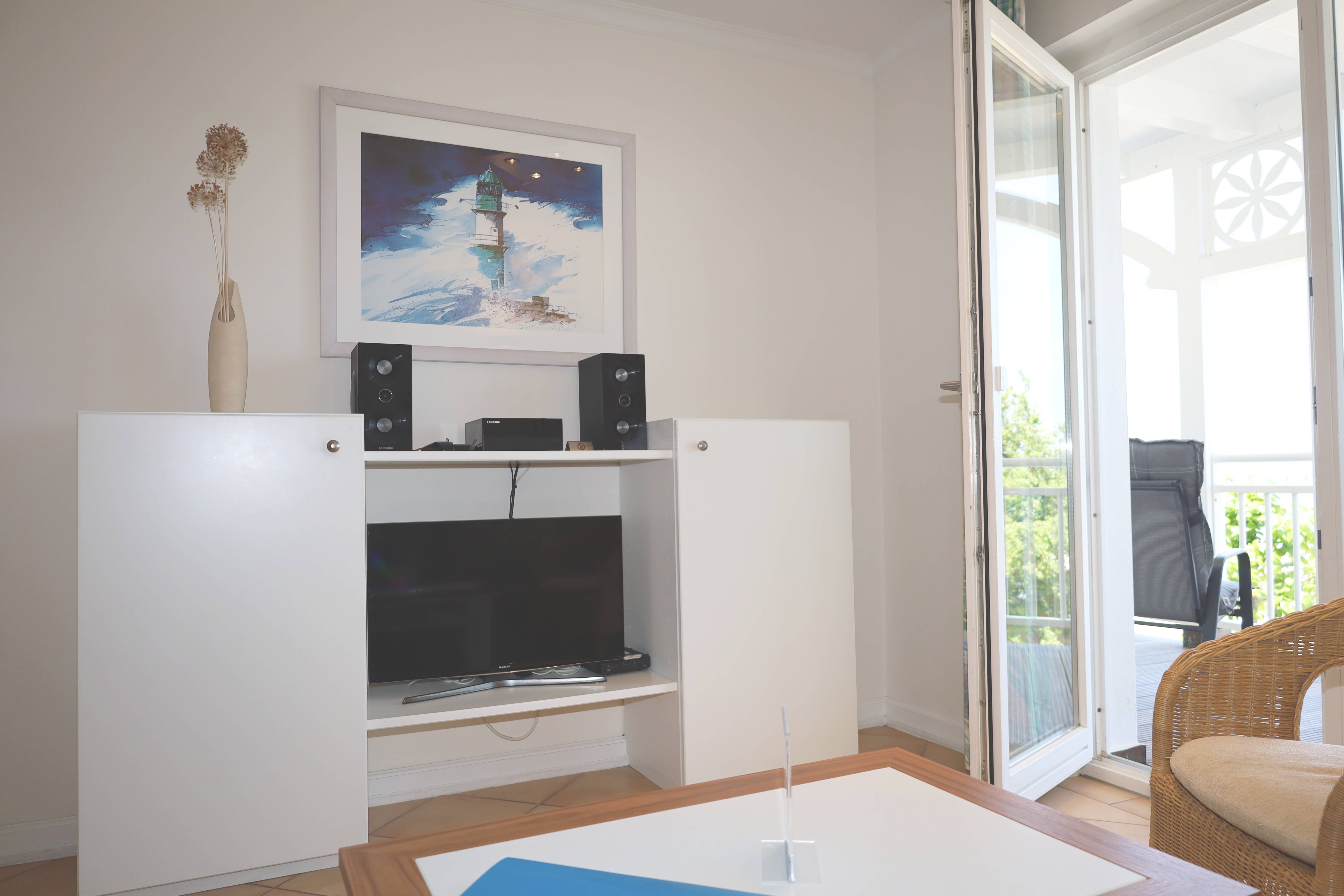 Dieses stilvoll eingerichtete 2-Raum-Appartement im 1. Obergeschoss der Villa bietet auf ca. 47 m² den perfekten Rückzugsort für erholsame Urlaubstage. Die Nichtraucher- und haustierfreie Wohnung besticht durch ihren großen, möblierten Balkon mit frontalem Ostseeblick, den Sie sowohl vom Wohnzimmer als auch vom Schlafzimmer aus betreten können.