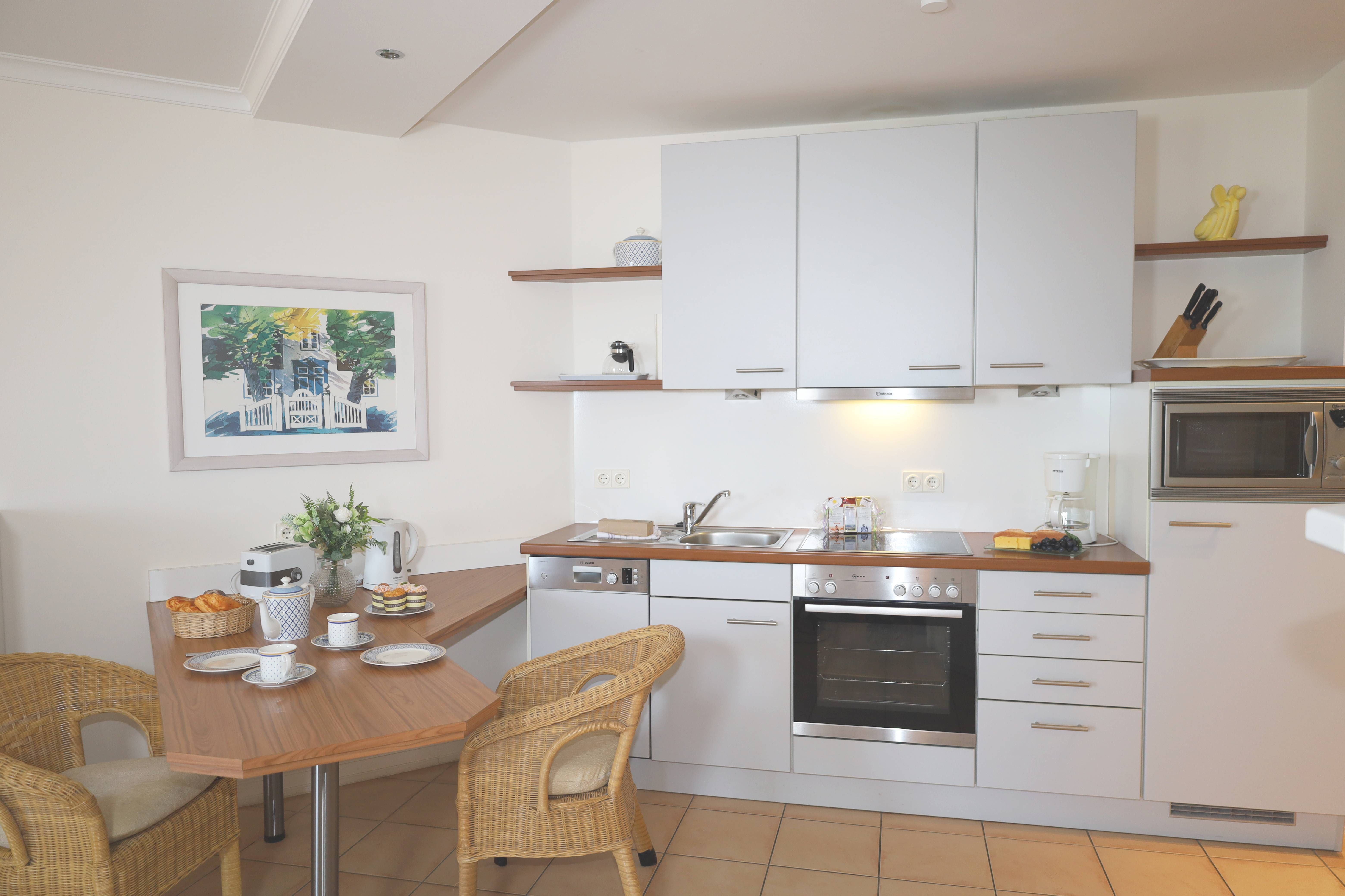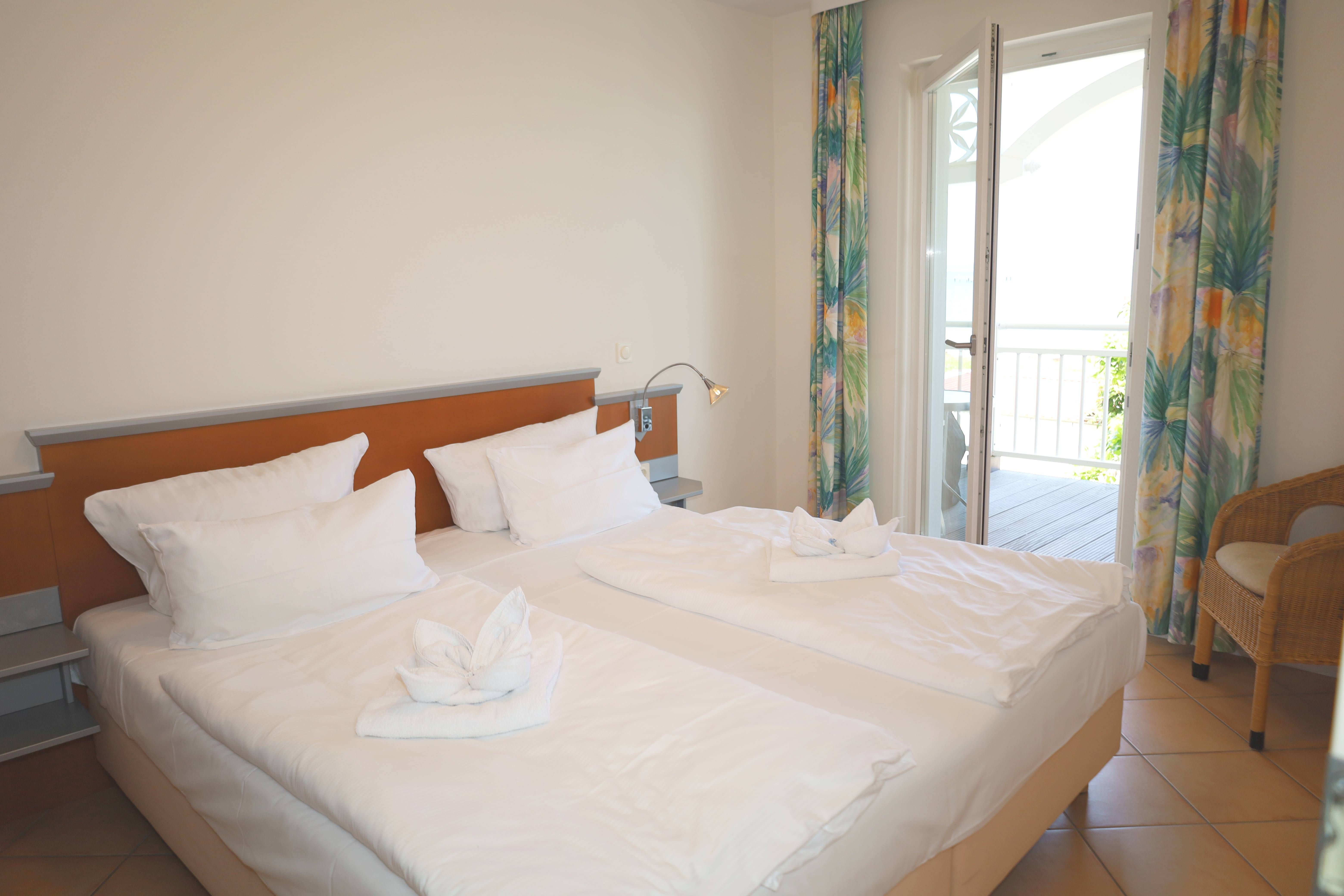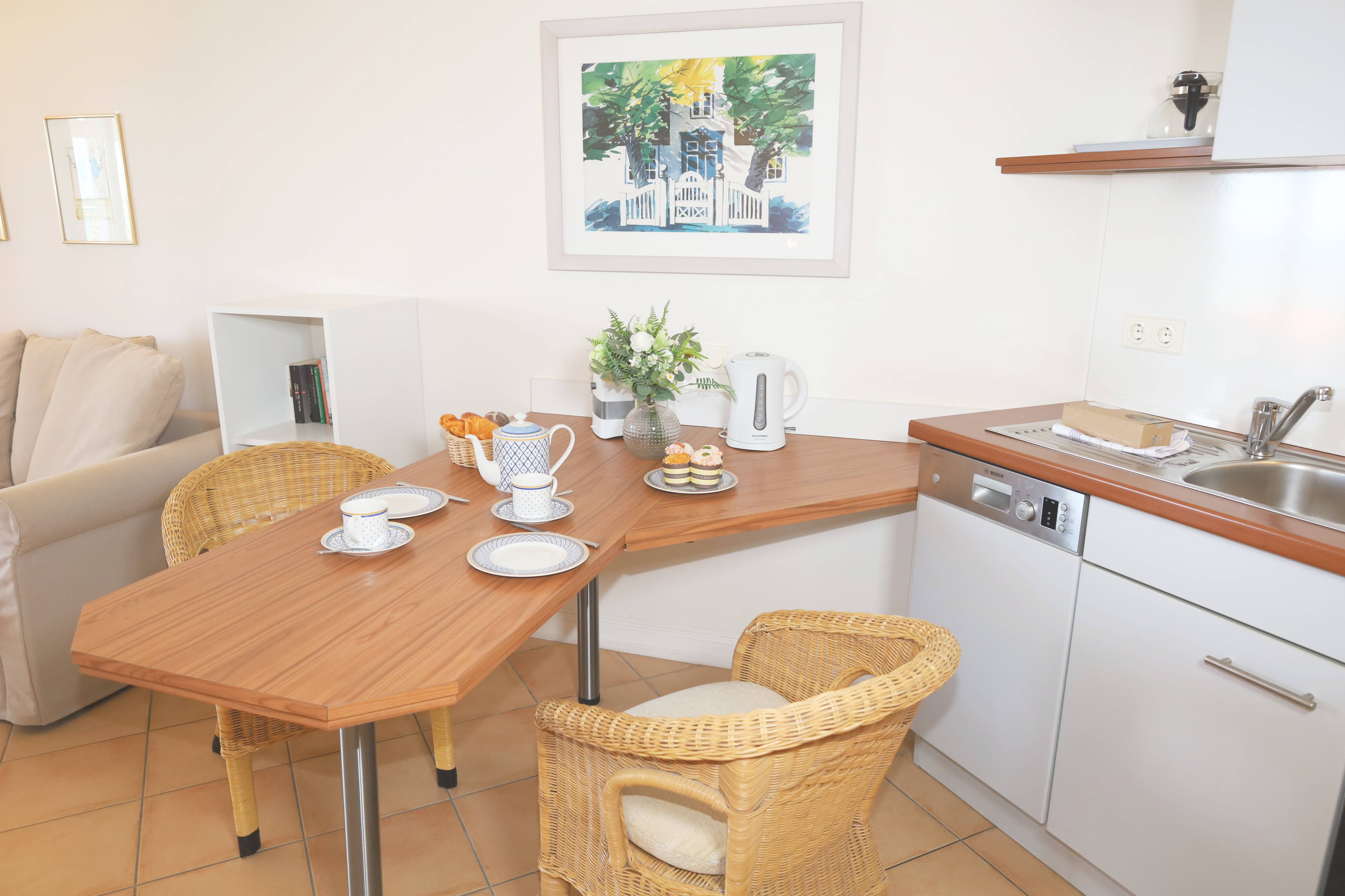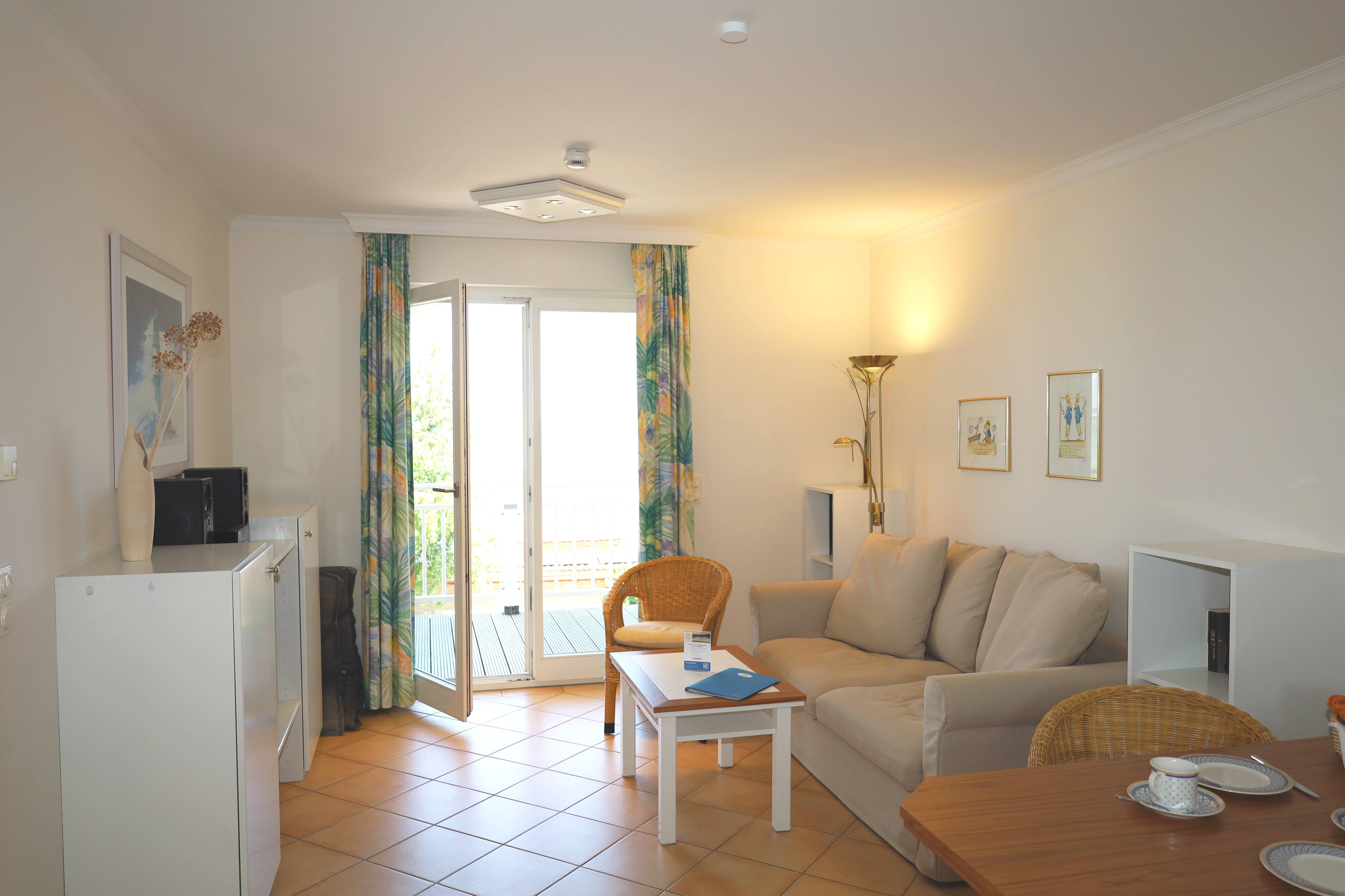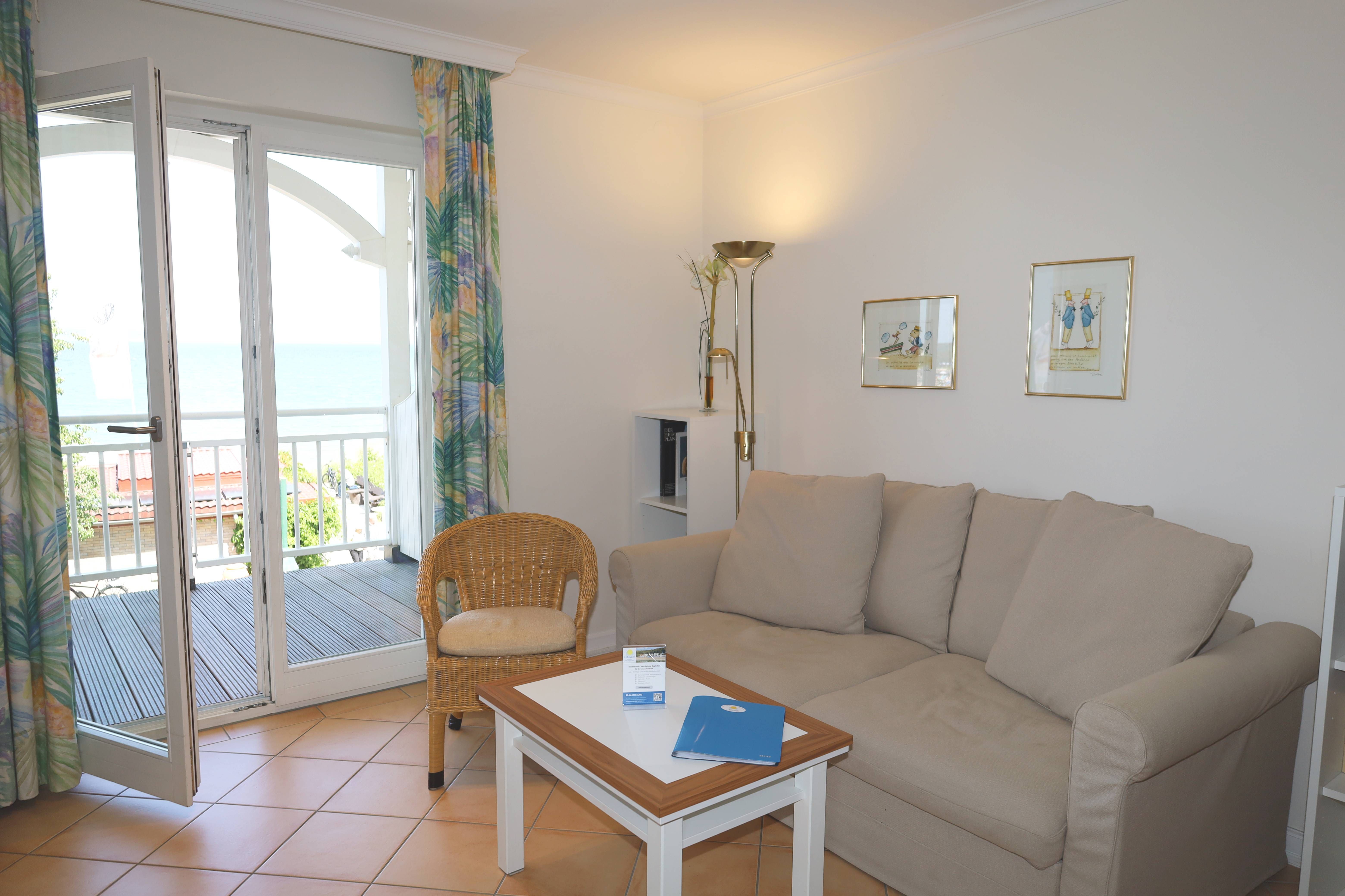 Das 2-Raum-Appartement befindet sich im 1. Obergeschoss und verfügt über einen Balkon mit frontalen Meerblick. Das Appartement ist für bis zu zwei Personen vorgesehen.