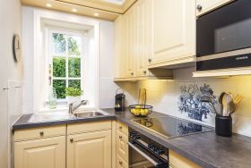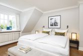 Gemütlichkeit trifft Stil - ein schönes Hausteil für Vier zentrumsnah und doch ruhig gelegen. Von der Haustür haben Sie sofort den Durchblick bis in den Garten mit Terrasse und Strandkorb zur Sonnenseite Süden. Das Erdgeschoss erfreut mit separater Küche und kombiniertem Wohn-/Essbereich in eleganten Naturtönen mit kleinen Farbakzenten mit gemütlichen Polstermöbeln, Kamin und schönem Esstisch für gemütliche Runden. Das helle Untergeschoss bietet ein Doppelschlafzimmer mit großen Einbauschränken und gleich nebenan ein Wannenbad. Ein großes Schlafzimmer mit Gartenblick und ein modernes Duschbad befinden sich im Obergeschoss. Das Quartier ist mit Terracotta- und Holzfußböden ausgestattet.