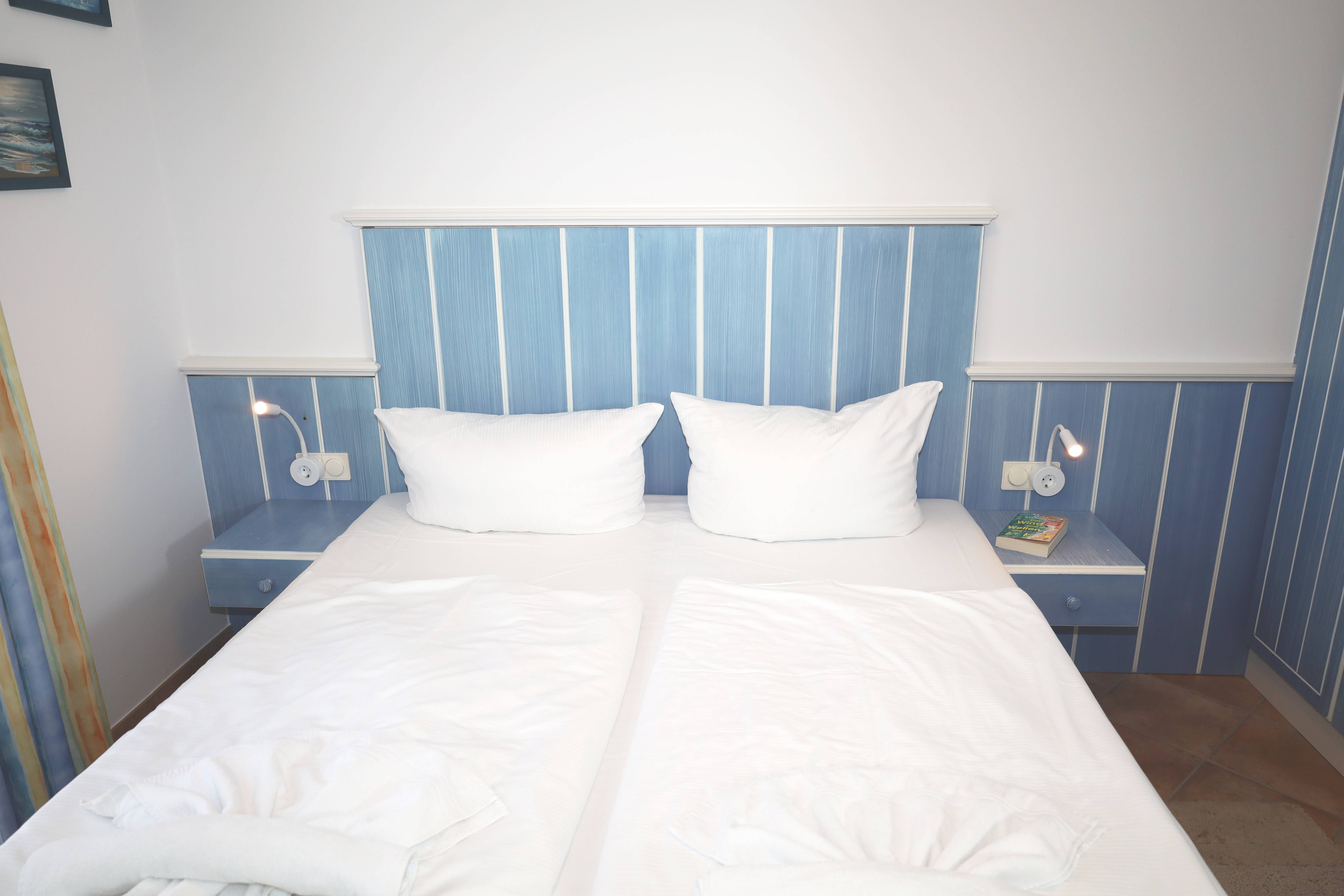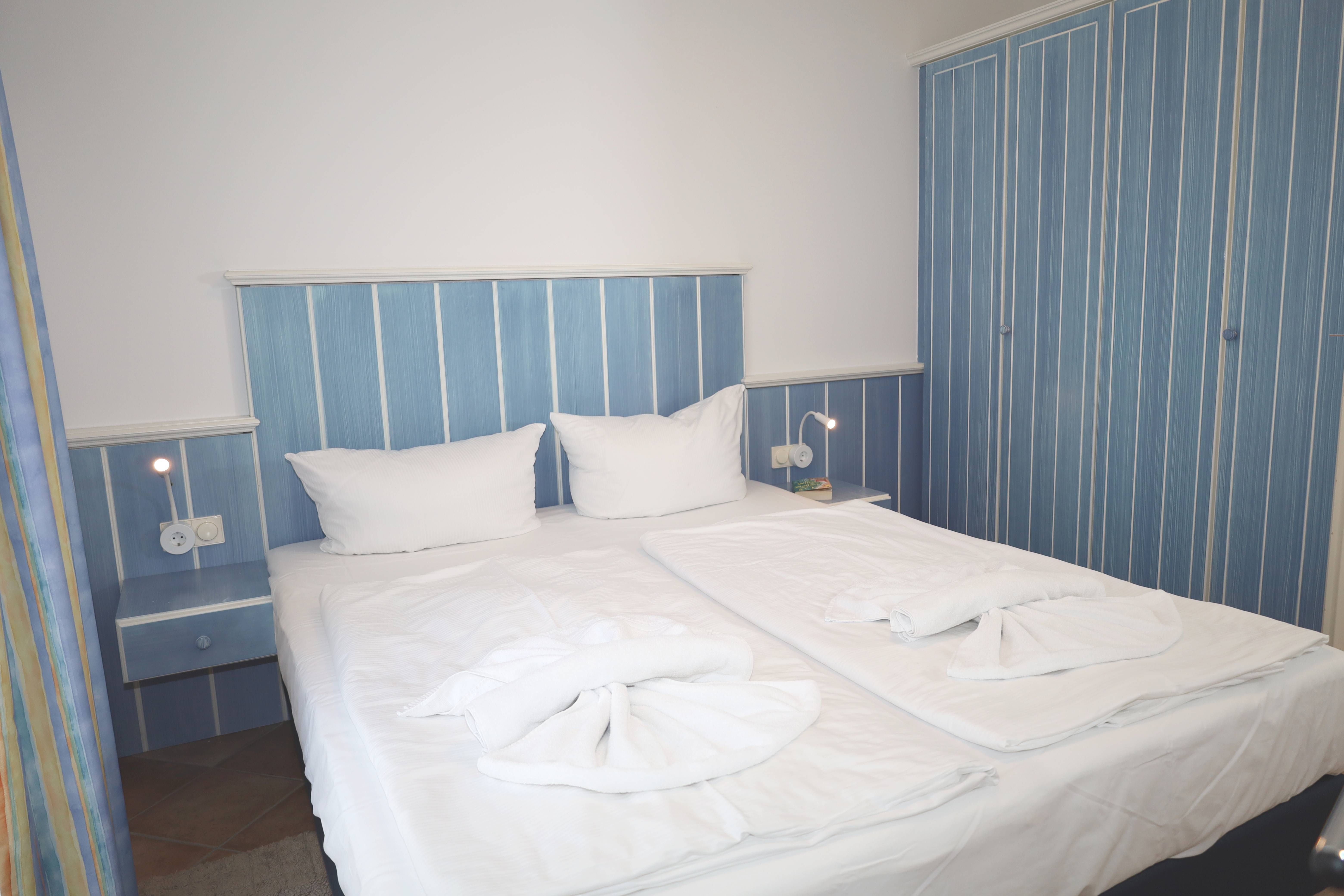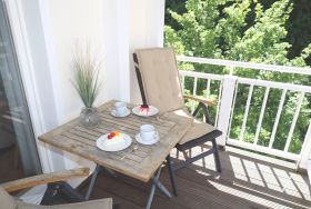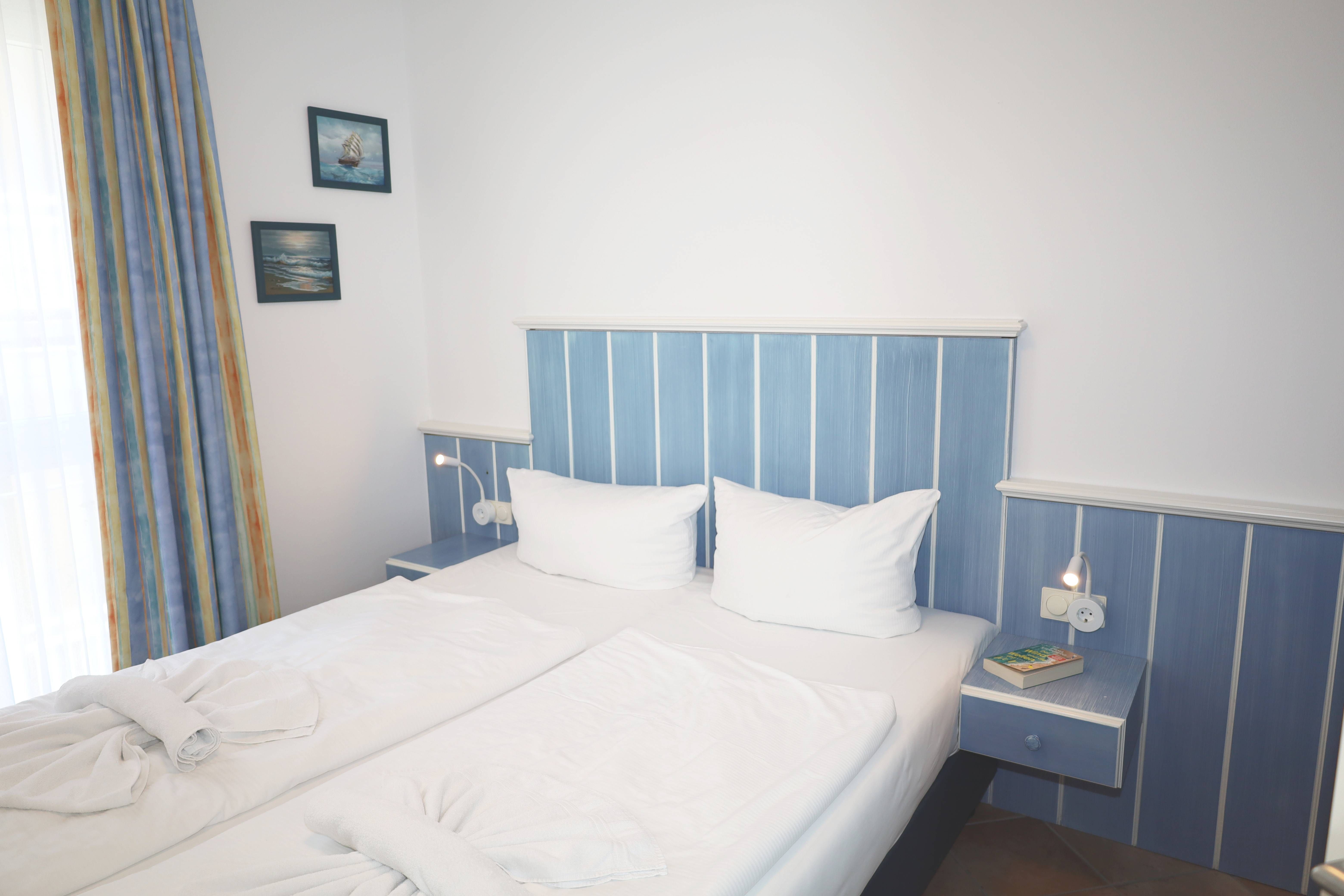 Das 2-Raum-Appartement befindet sich im 2. Obergeschoss und ist für bis zu 2 Personen geeignet. Das Appartement verfügt über einen Balkon mit seitlichem Meerblick.