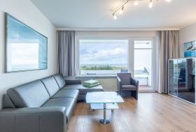 Auch von den beiden Balkonen können Sie den Meerblick und den Sonnenuntergang genießen. Lassen Sie die Seele baumeln und genießen Sie das hauseigene Schwimmbad und die Sauna. Darüber hinaus verfügt Ferienwohnung Atlantic 305 über ein modernes Bad mit Dusche und WC. Zur Wohnung gehören ein KFZ-Stellplatz und eine abschließbare Fahrradgarage, die ideal für mitgebrachte Fahrräder oder E-Bikes ist.