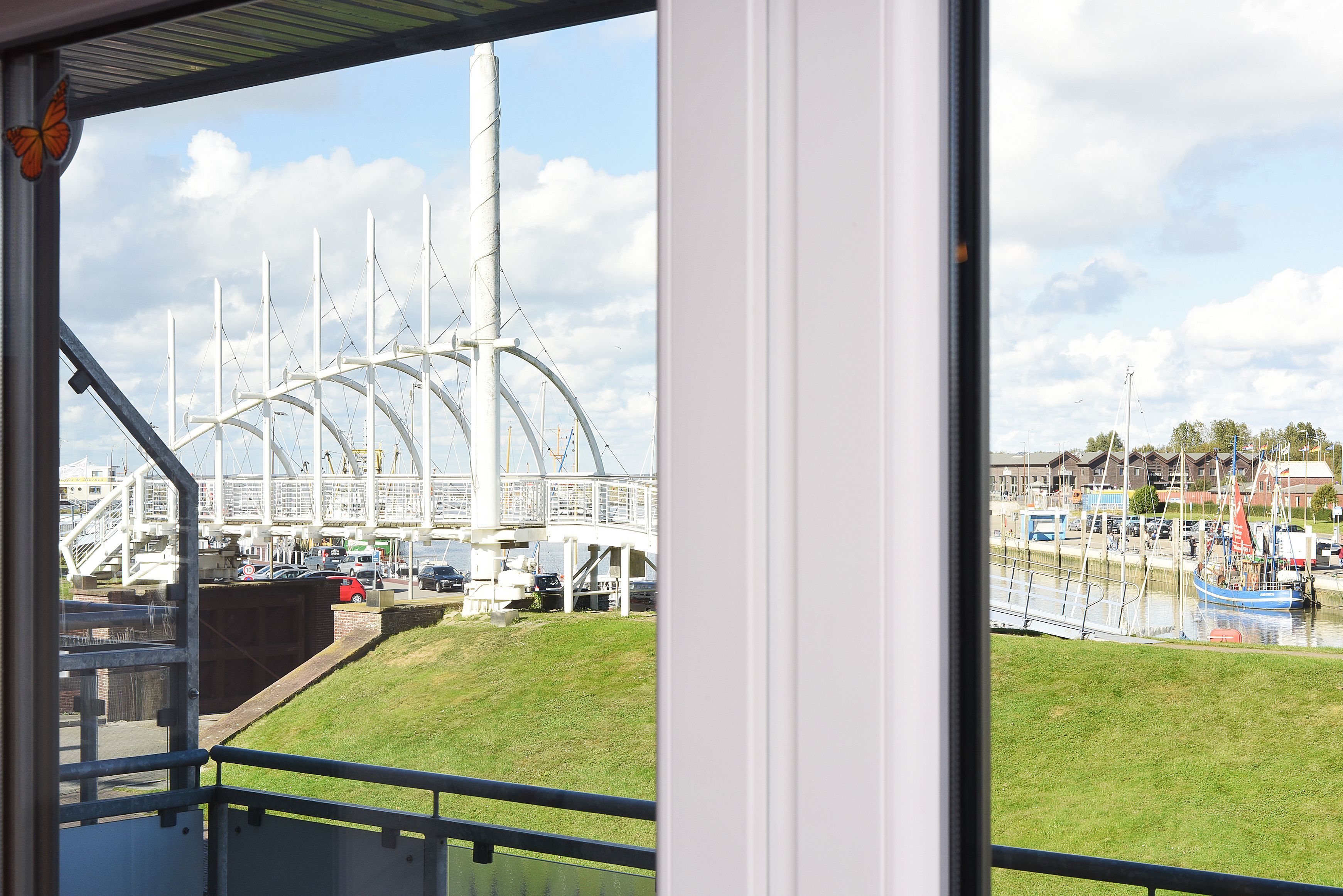 Erstklassiger Urlaub mitten in Bensersiel: Ferienwohnungen in der „Residenz am Hafen“ mit fantastischer Aussicht auf den Hafen, die Nordsee und die Inseln!