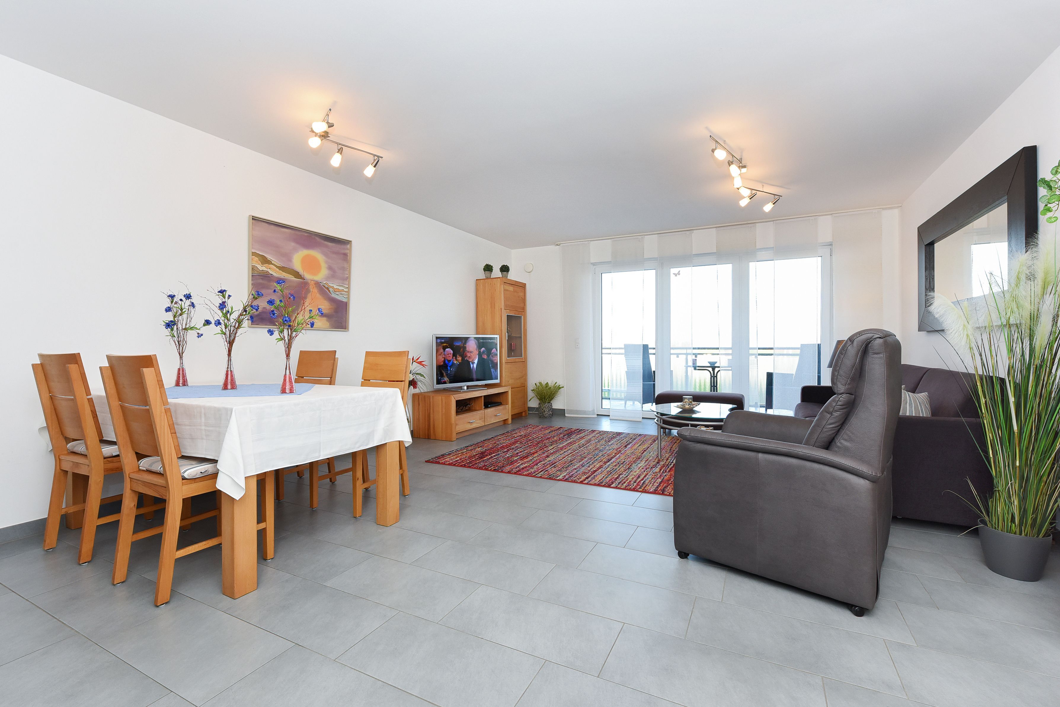 Vom Balkon aus haben Sie einen herrlichen Blick über den Deich hinweg auf den Bensersieler Hafen, auf die Nordsee und auf mehrere Ostfriesischen Inseln! Ihre Ferienwohnung ist von der Tiefgarage und allen anderen Eingängen des Hauses aus mit Fahrstühlen und völlig ohne Treppen erreichbar.