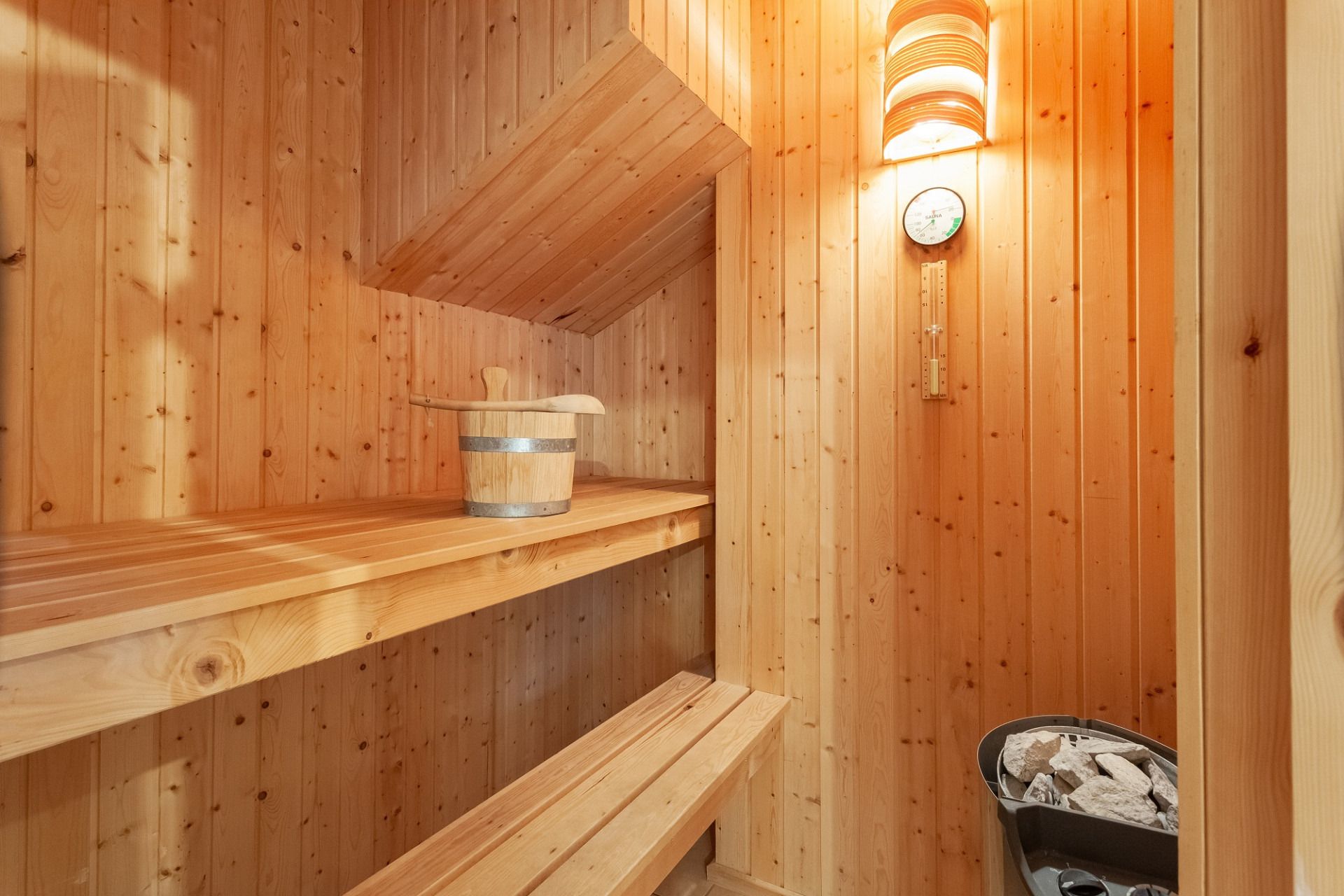 Entspannen Sie sich nach einem erlebnisreichen Tag in der hauseigenen Sauna oder genießen Sie ein Bad im Whirlpool.