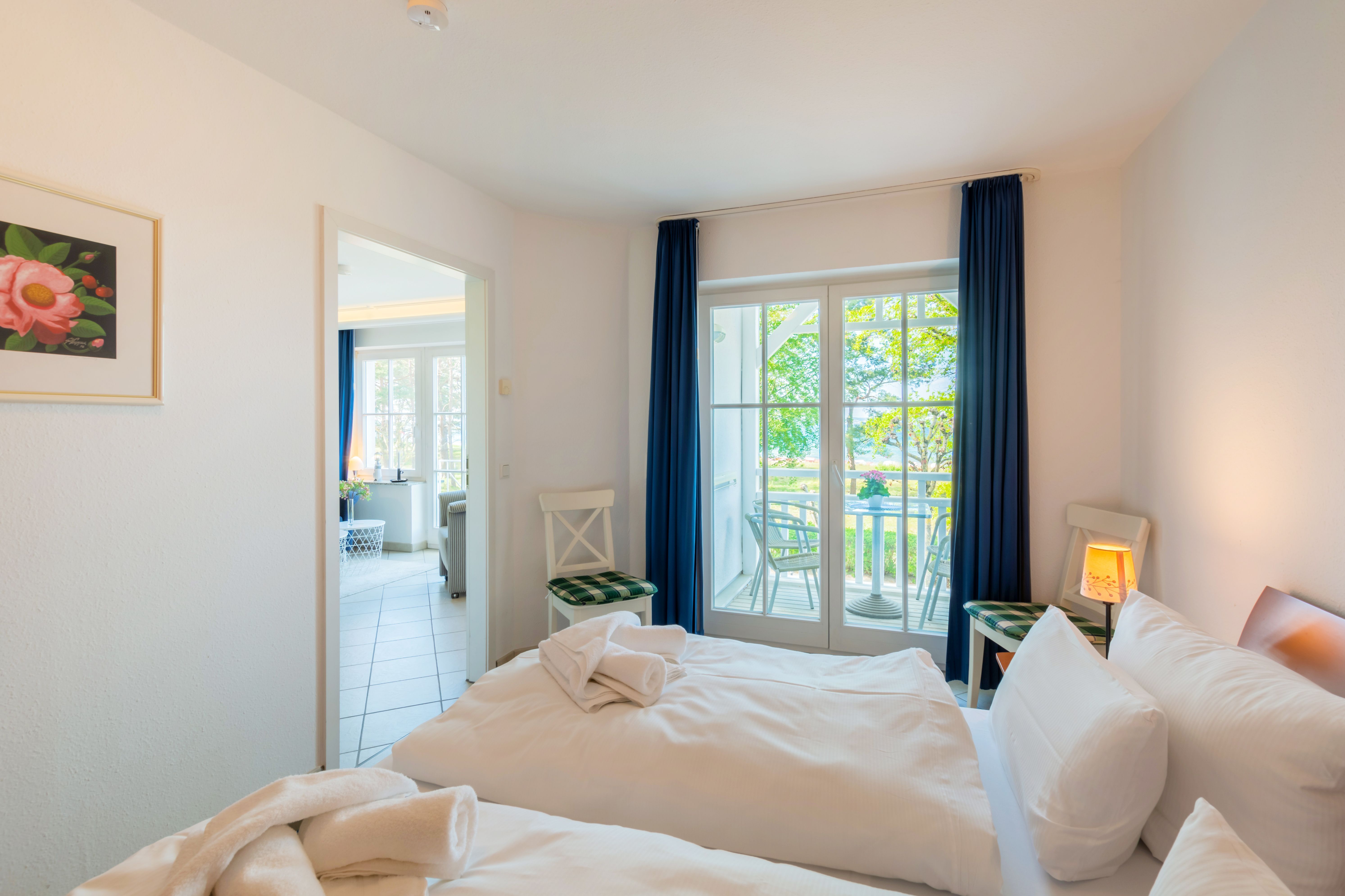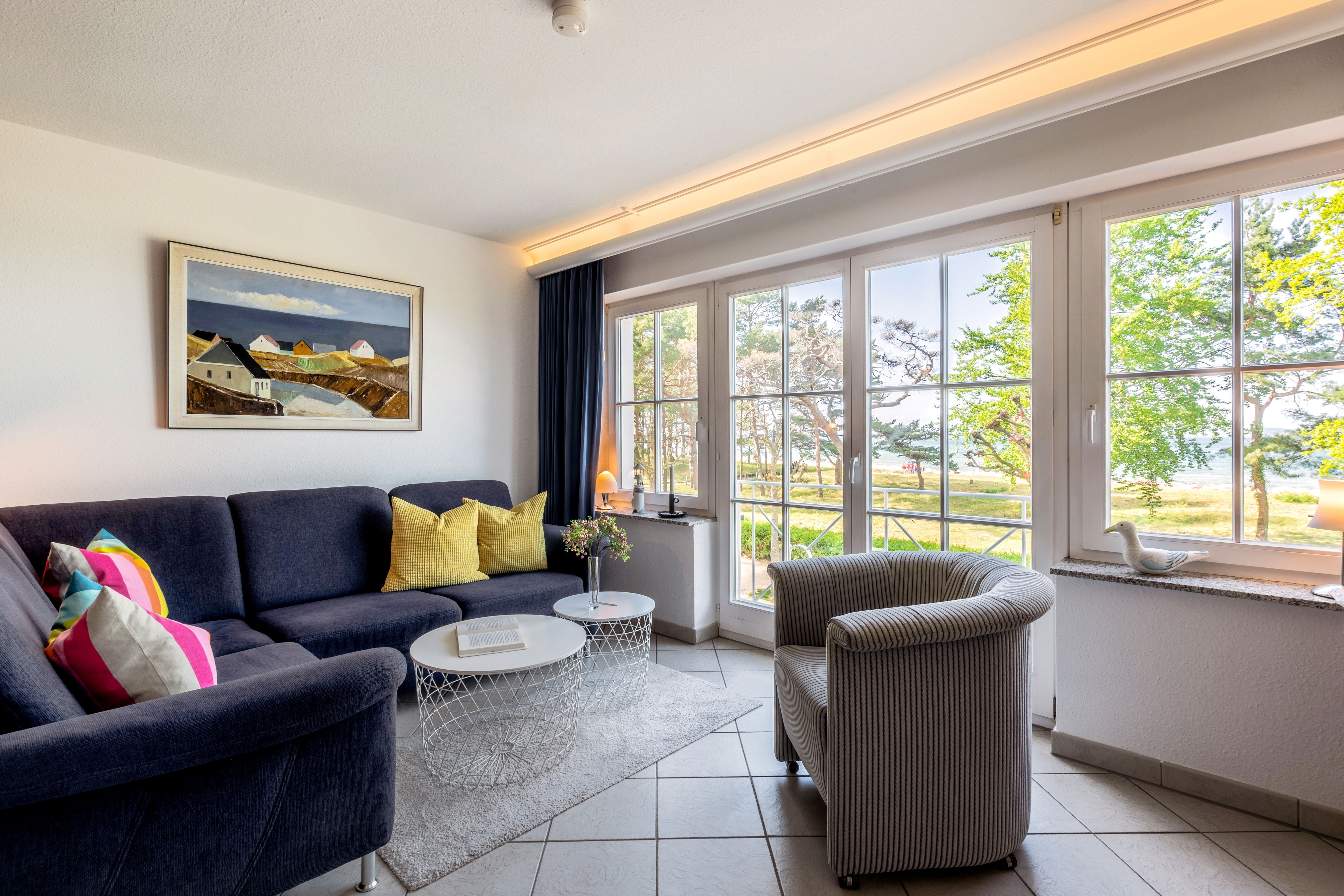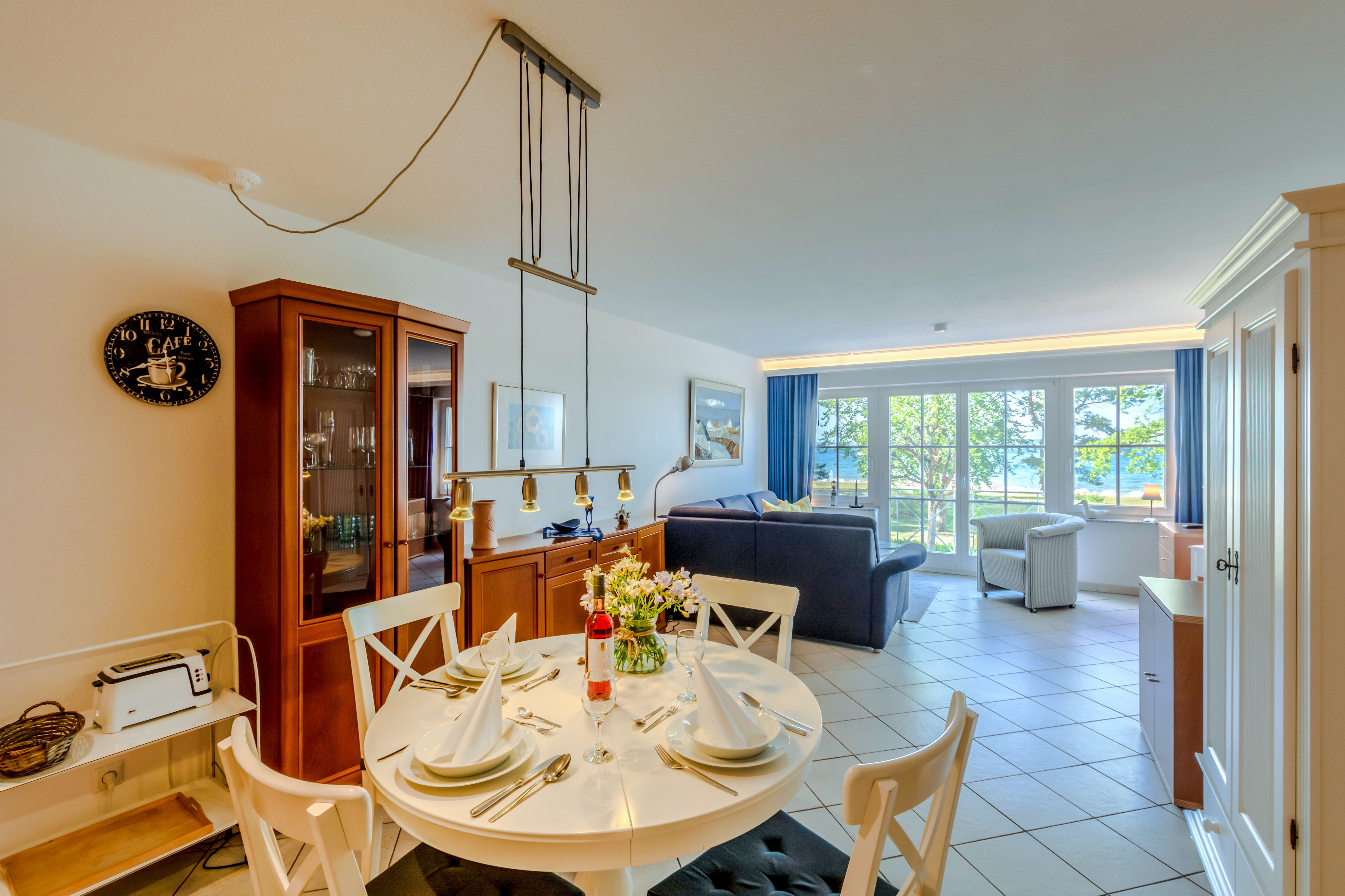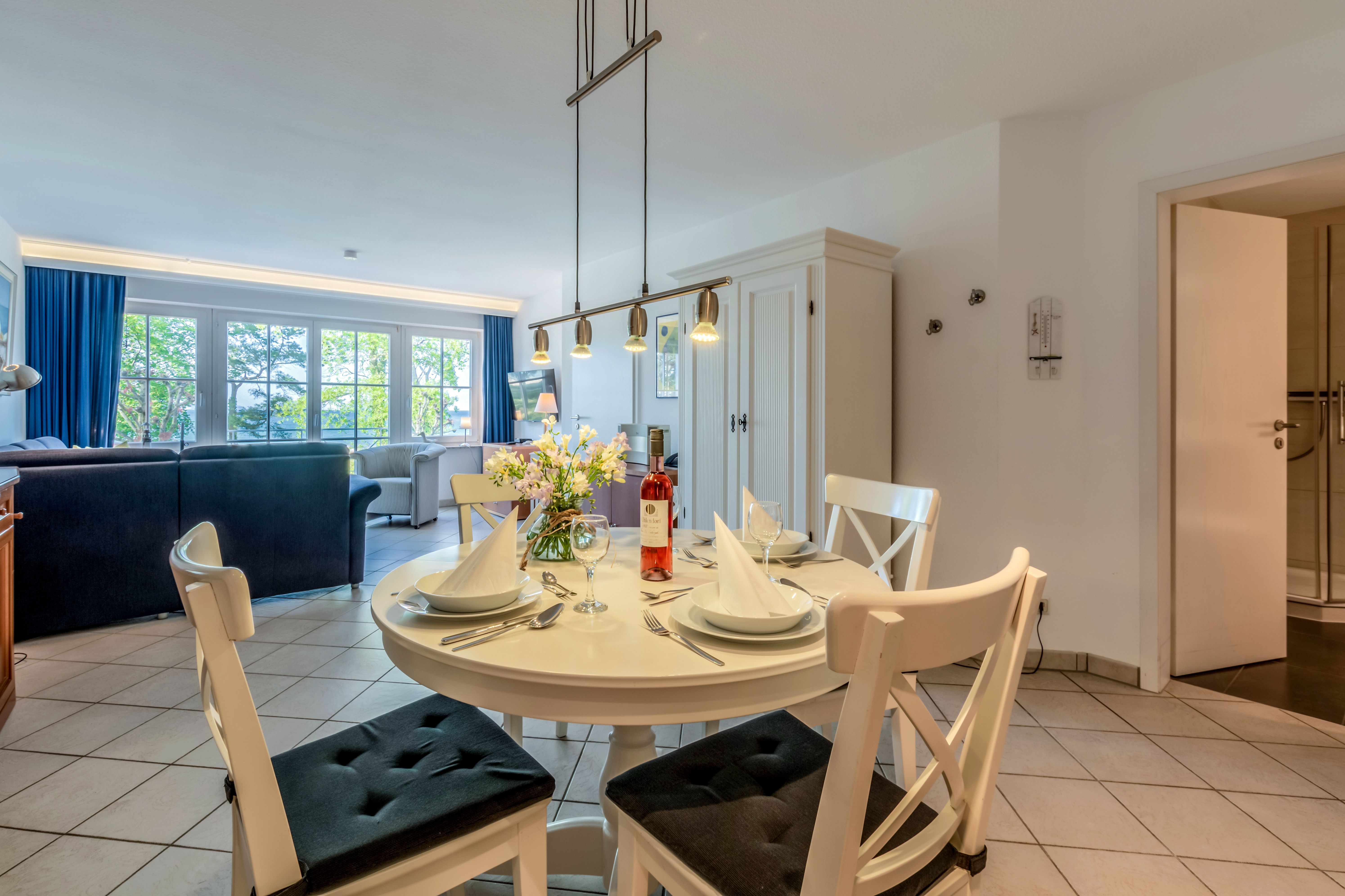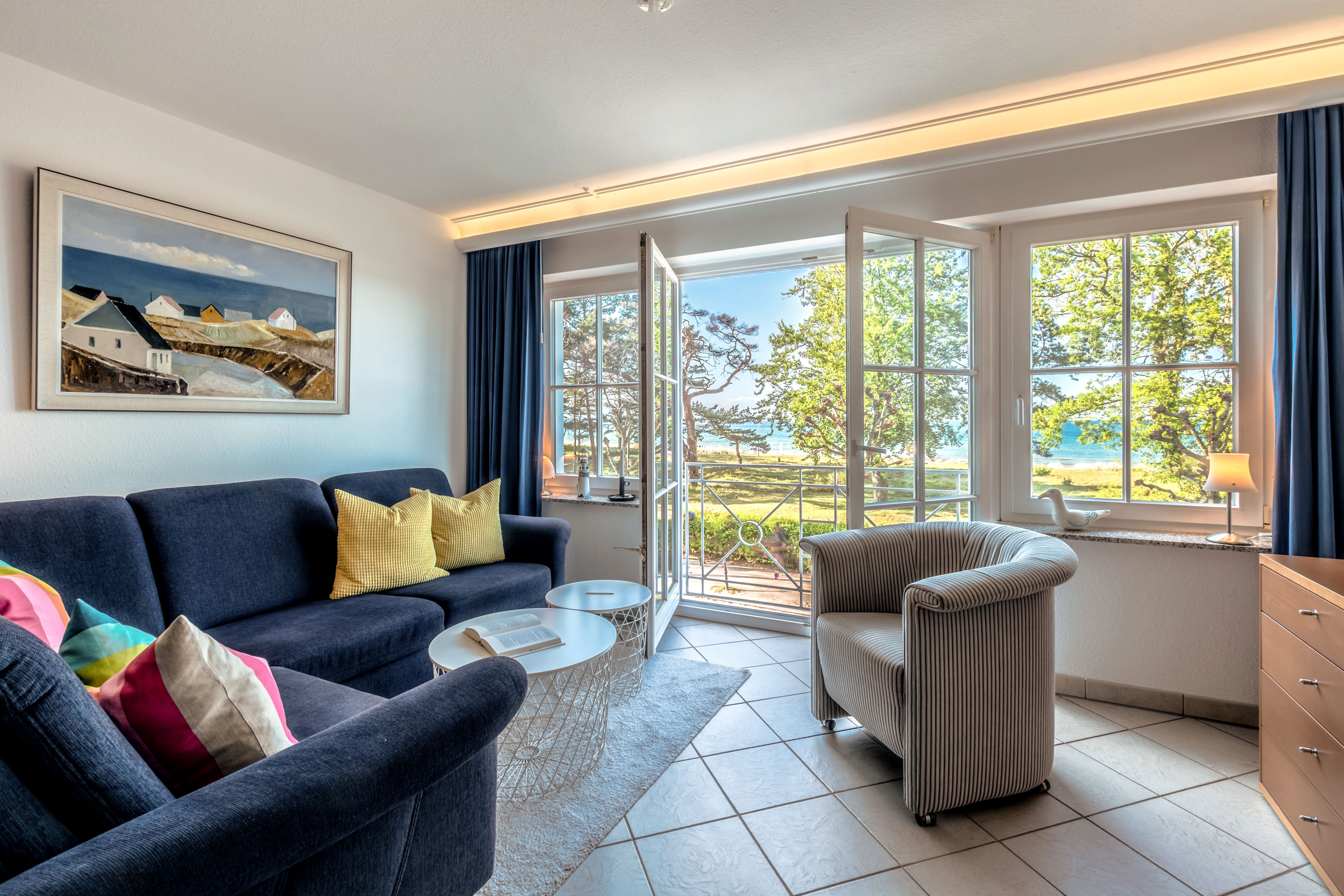 Sie erwarten stilvoll eingerichtete 1 - 3 Zimmer-Ferien-Appartements, mit Balkon mit frontalem Meerblick oder mit Südbalkon mit Blick in den Granitzer Wald, Pkw-Stellplatz am Haus, Waschmaschine und Trockner gegen Gebühr sowie ein Strandkorb in der Sommersaison. In allen Appartements steht Ihnen WLAN zur Verfügung. Ein Fahrstuhl ist im Seeschloss vorhanden, womit Sie ganz komfortabel die Appartements erreichen.