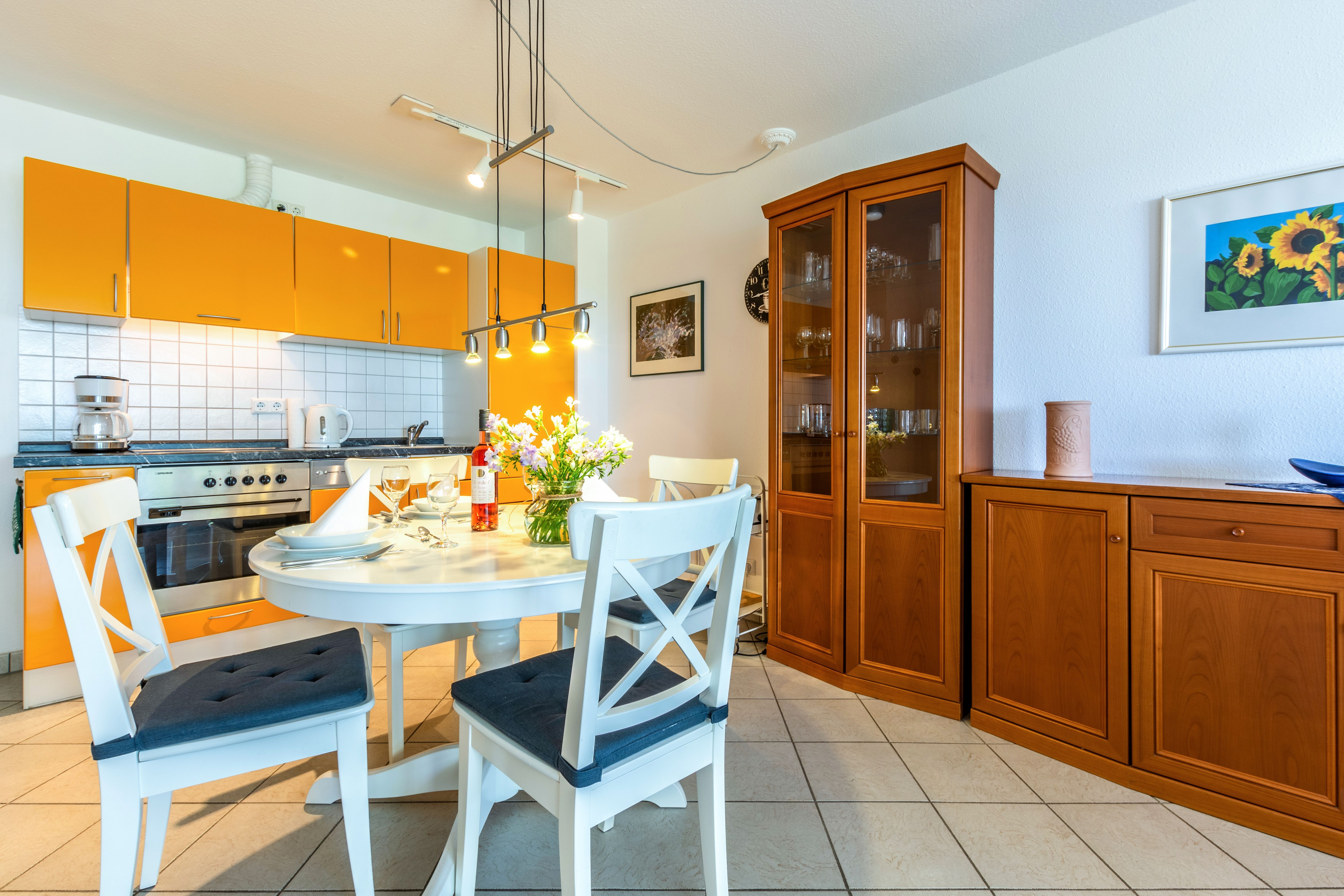 Die komplett ausgestattete Wohnküche mit Geschirrspüler, Ceran-Back-Herd und weiteren nützlichen Geräten wie Kaffeemaschine, Toaster, Wasserkocher bietet alles für ein gemeinsames Frühstück, Mittag- und Abendessen mit den Lieben.