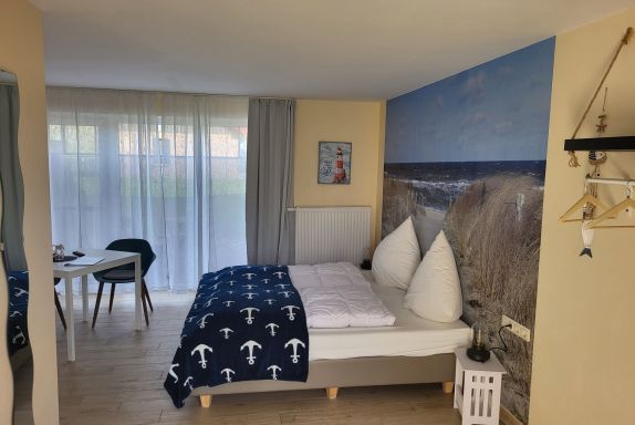 Das Nichtraucherzimmer bietet Euch eine moderne Ausstattung im Stil der Ostseeregion mit Strand-, Dünen- und Treibholz-Elementen.