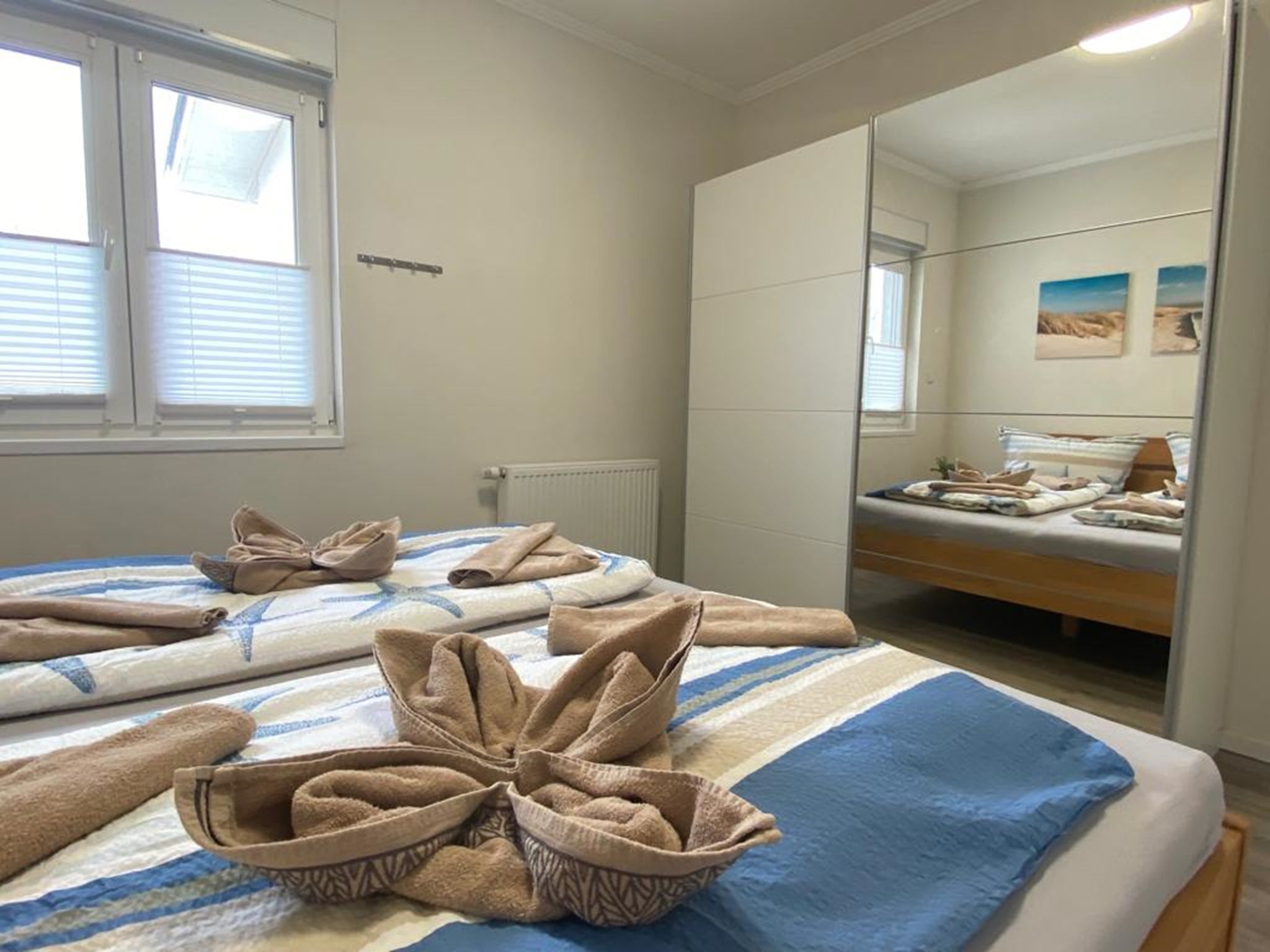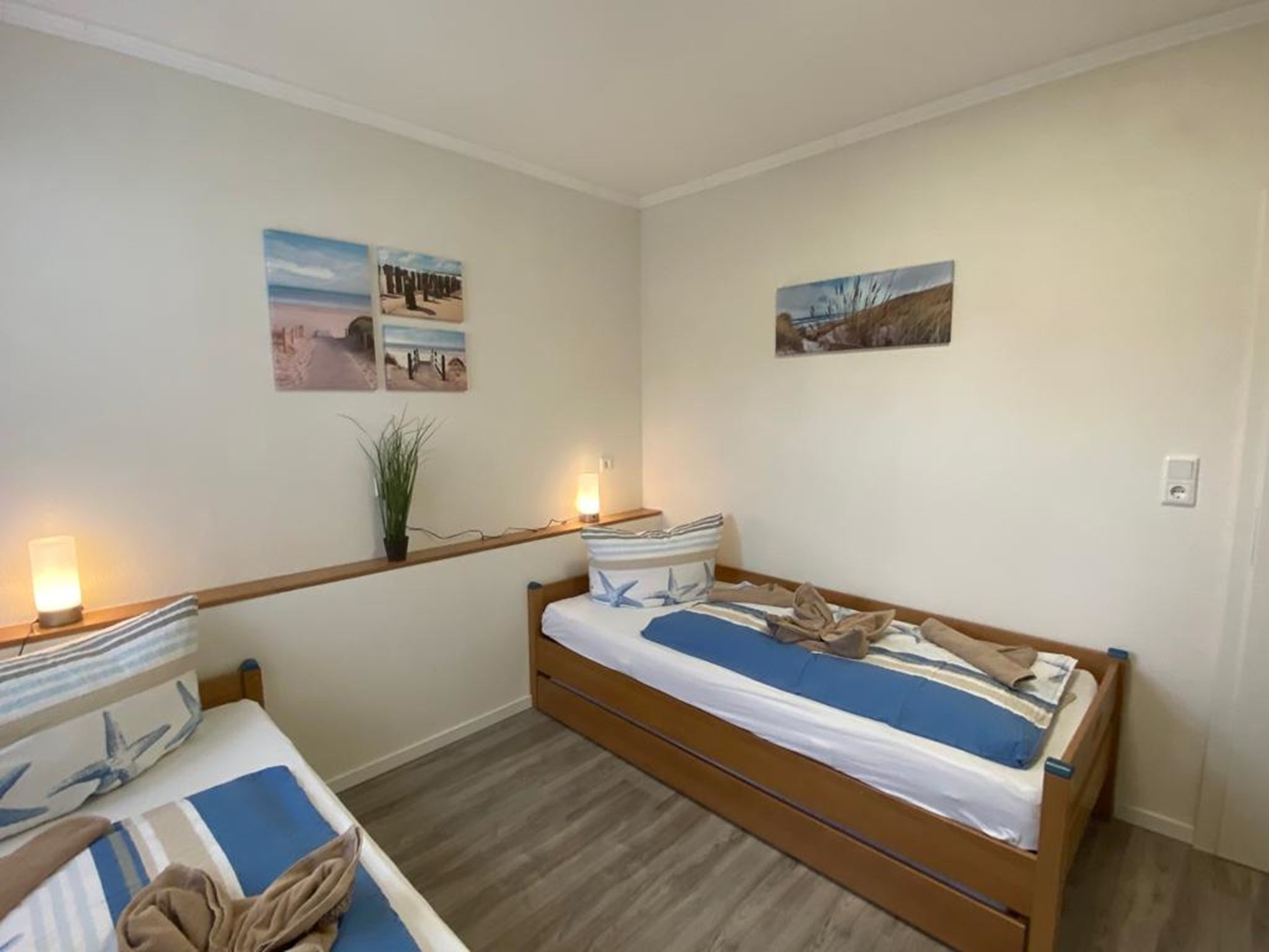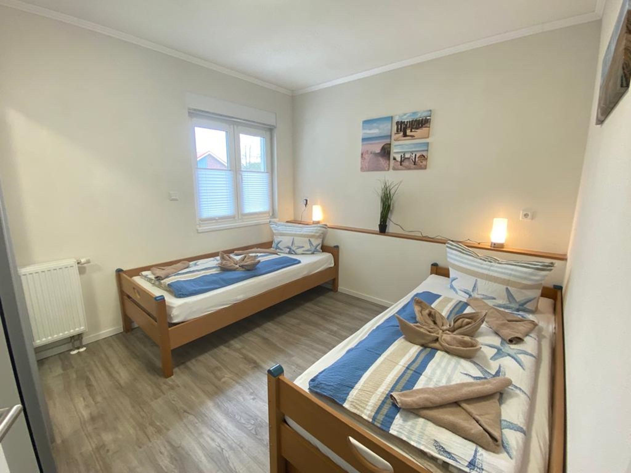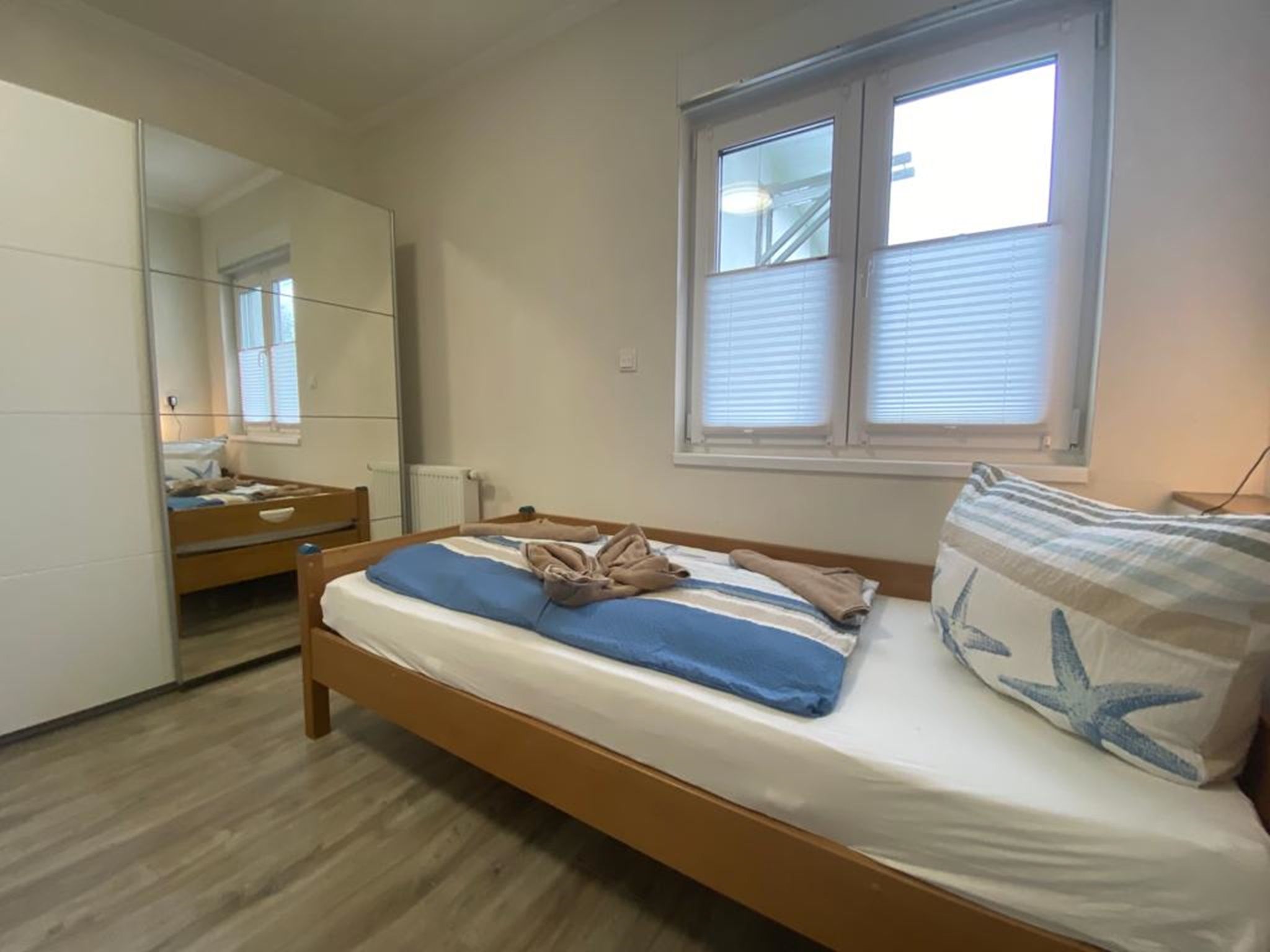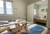 In den zwei separaten Schlafzimmern mit Kleiderschränken finden bis zu 5 Personen Platz. Ein Schlafzimmer ist mit einem Doppelbett in Standardgröße und das andere Schlafzimmer mit einem Einzelbett und einem Tandembett versehen. Letzteres kann ausgezogen werden, so dass eine fünfte Person einen unteren Schlafbereich nutzen kann.