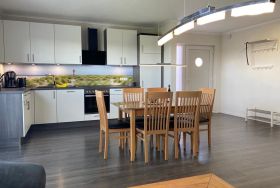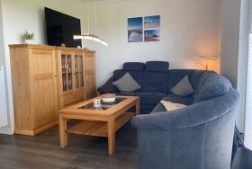 Das Haus ist mit hochwertigem Mobiliar ausgestattet. Auf dem mehrfach verstellbaren und zur Schlafcouch ausziehbaren Ecksofa entspannen Sie mit der ganzen Familie.