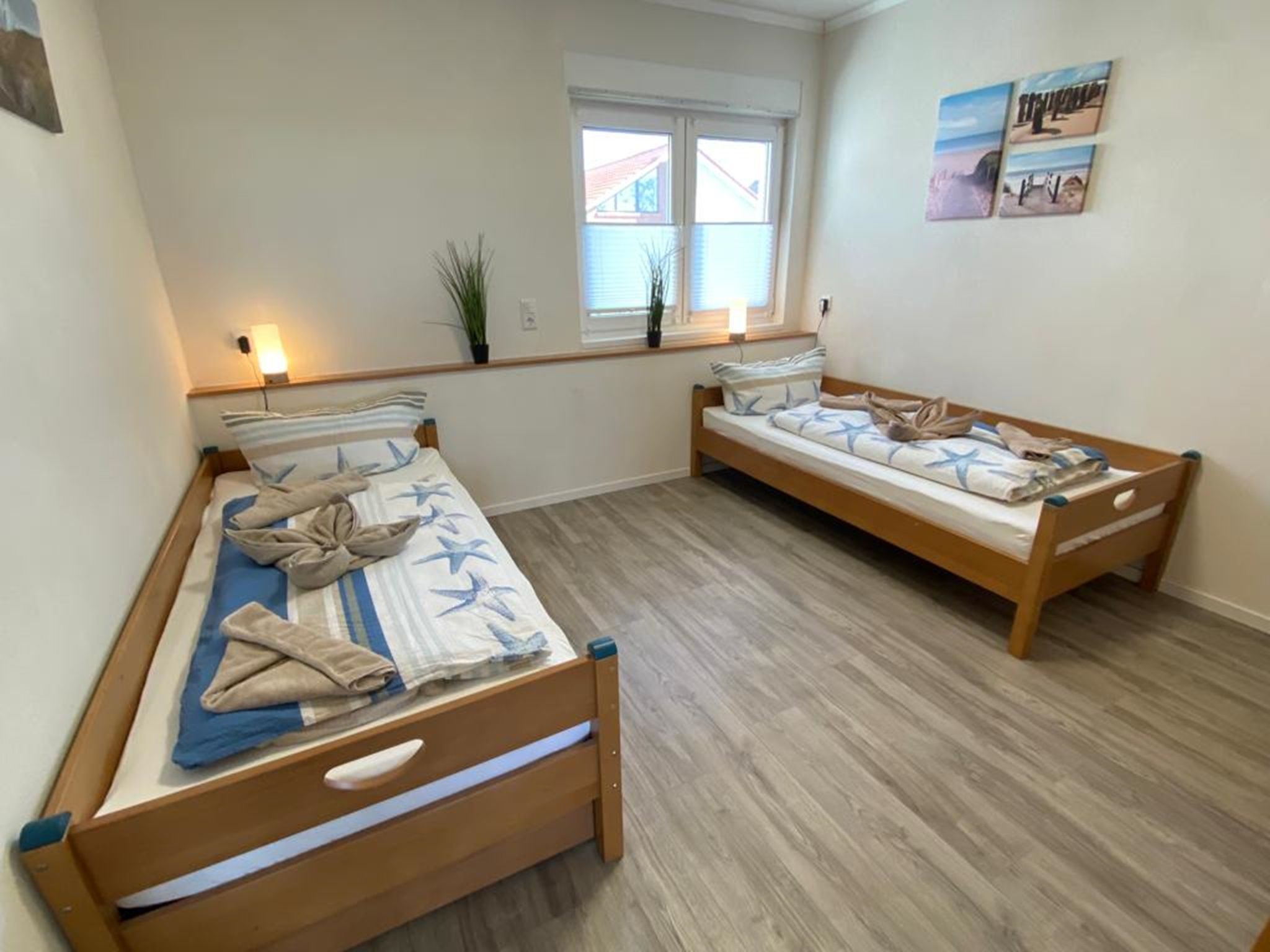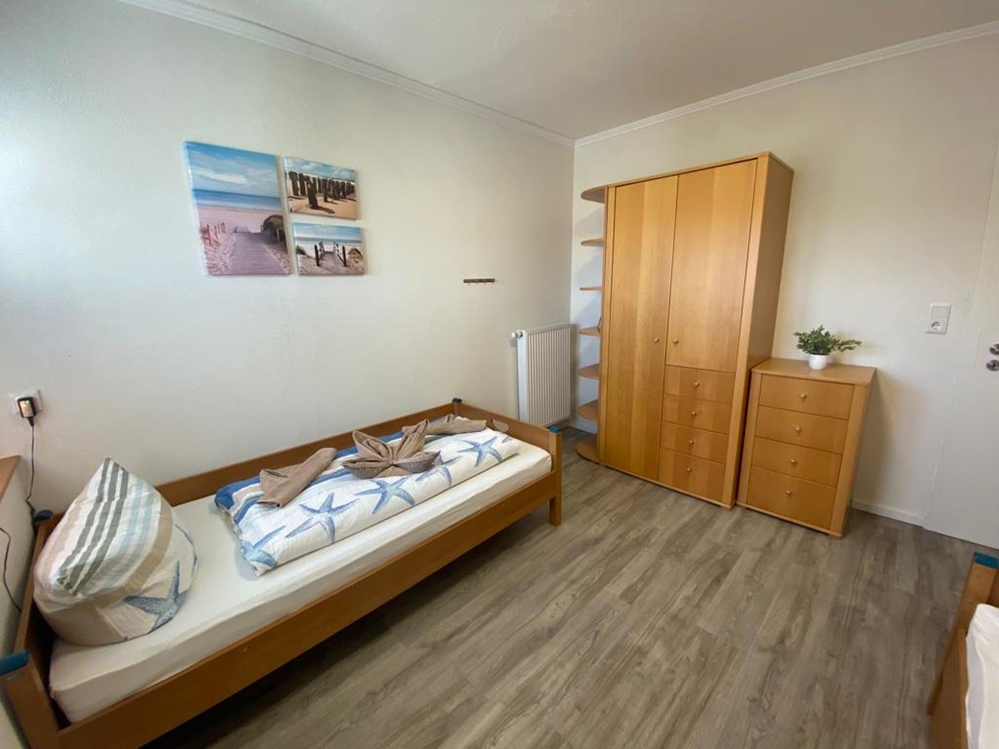 In den zwei separaten Schlafzimmern je mit Kleiderschränken finden bis zu 5 Personen Platz. Ein Schlafzimmer ist mit einem Doppelbett, das andere Schlafzimmer mit zwei Einzelbetten versehen. Eines hat eine voll ausziehbare Unterbettkommode.