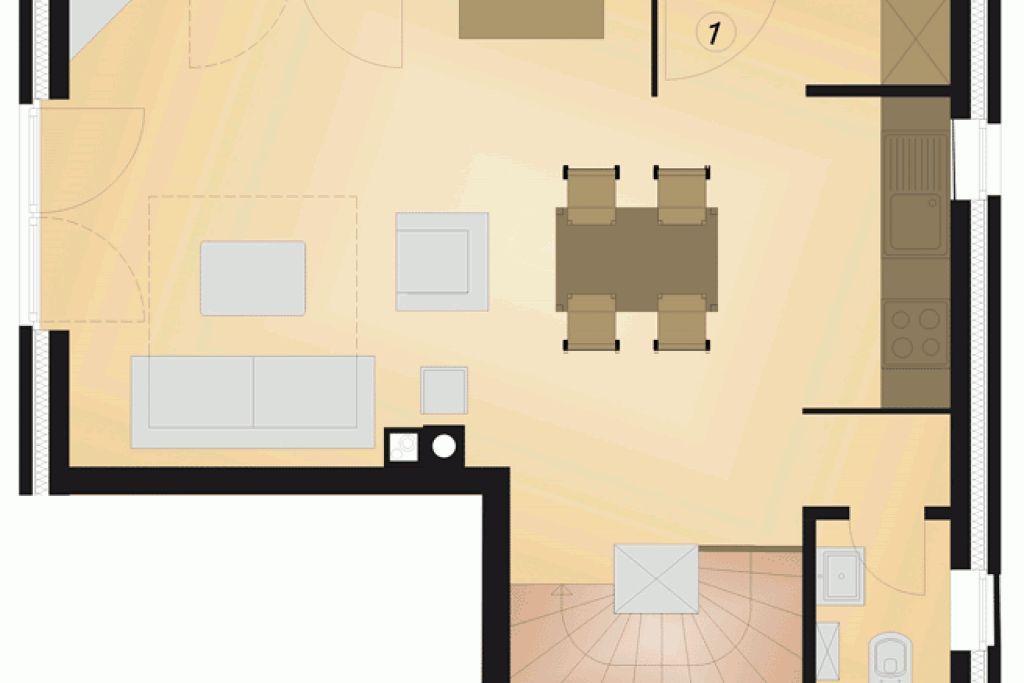 Luxuriöse 2-Zimmer-Maisonette-Nichtraucher-Ferienwohnung, ca. 68 qm, im Erdgeschoss mit eigenem Hauseingang, West- und Nordwestterrasse für 2 Personen gestattet. Im Erdgeschoss befindet sich das Wohnzimmer mit gemütlicher Ledercouchgarnitur (Sofa ausziehbar, 1,70 x 1,90 m), Kaminofen, Essbereich mit offener Küche, Zugang zur West- und Nordwestterrasse mit Strandkorb, sowie 1 Gäste-WC.