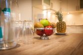 Die offene Küche ist mit Cerankochfeld, Geschirrspüler, Mikrowelle, Backofen, Kühlschrank, Nespresso-Maschine und einem Eierkocher voll ausgestattet. Toaster, Kaffeemaschine und Wasserkocher gehören zur Grundausstattung.