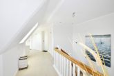 Auf der oberen Ebene, im Dachgeschoss, befinden sich ein Zweibett-Zimmer mit Boxspringbetten (0,90 x 2,00 m), Freiluftzugang zur Westloggia sowie ein Gäste-WC mit Waschbecken.
