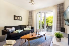 Das 2-Raum-Appartement ist mit 4 Sternen nach DTV-Klassifizierung für max. 4 Personen ausgezeichnet. Das Appartment befndet sich im 1. Oberschoss und ist mit einem Aufzug zuerreichen.