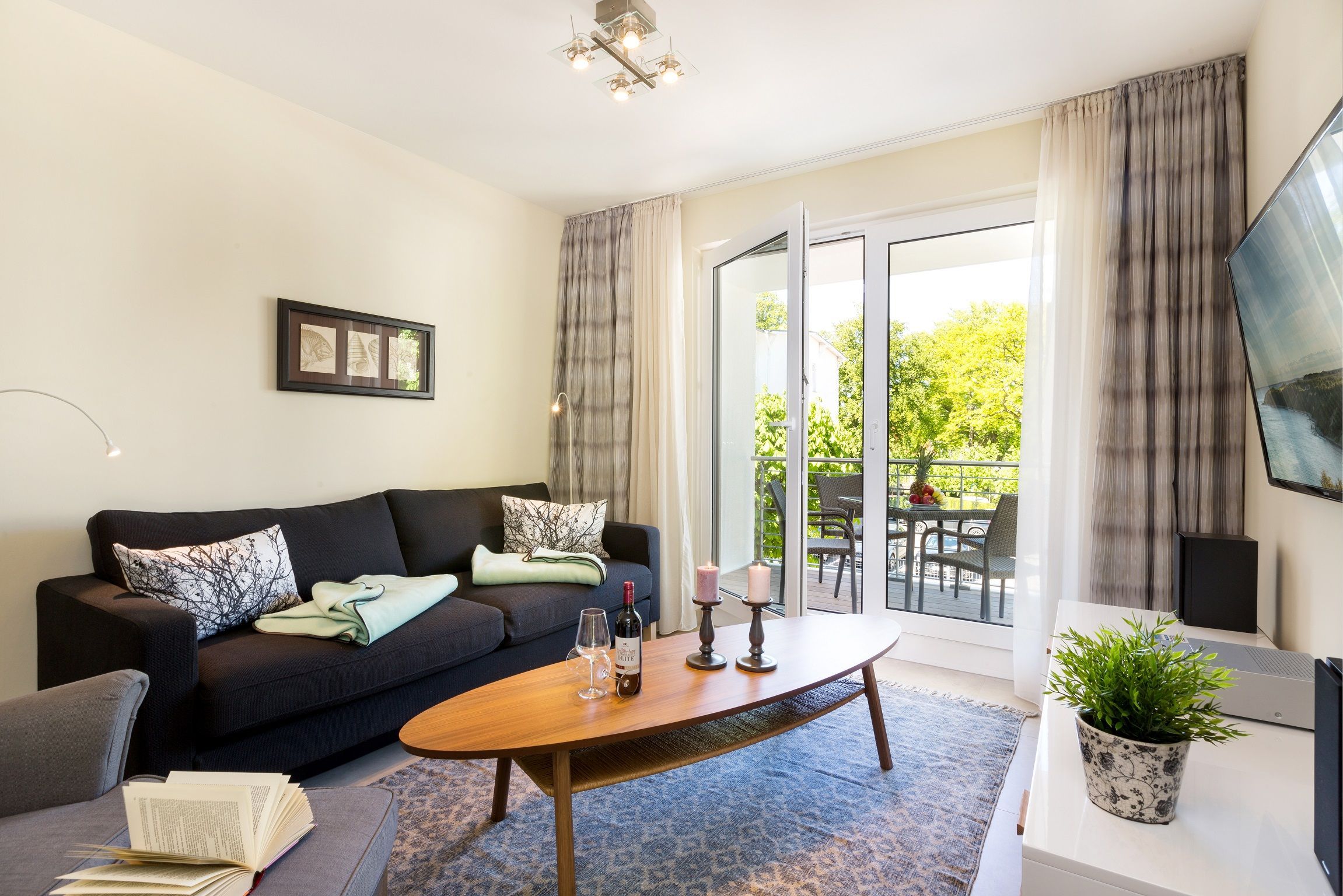 Sie erwarten helle und modern eingerichtete 2 - 3 Zimmer-Ferien-Appartements, mit voll ausgestatteten Küchen mit Markengeräten, luxuriösem Interieur sowie einem großem überdachten Balkon, Pkw-Stellplatz am Haus und einen Waschmaschine und Trockner.