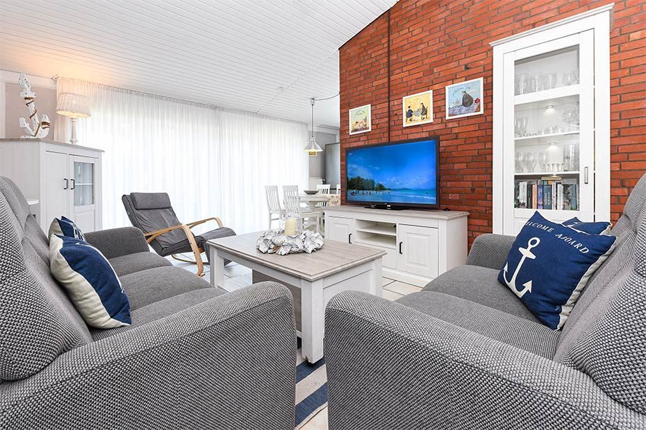 Das Ferienhaus „Luv und Lee“ ist hell und freundlich gestaltet, komfortabel und modern-gemütlich eingerichtet sowie sehr gut ausgestattet. Es verfügt zum Beispiel über eine Küche mit Geschirrspülmaschine und Mikrowelle, moderne Boxspringbetten in den Schlafzimmern, einen Hauswirtschaftsraum mit Waschmaschine und Wäschetrockner sowie über eine große geschützte Terrasse am Wohnzimmer mit direktem Gartenzugang.