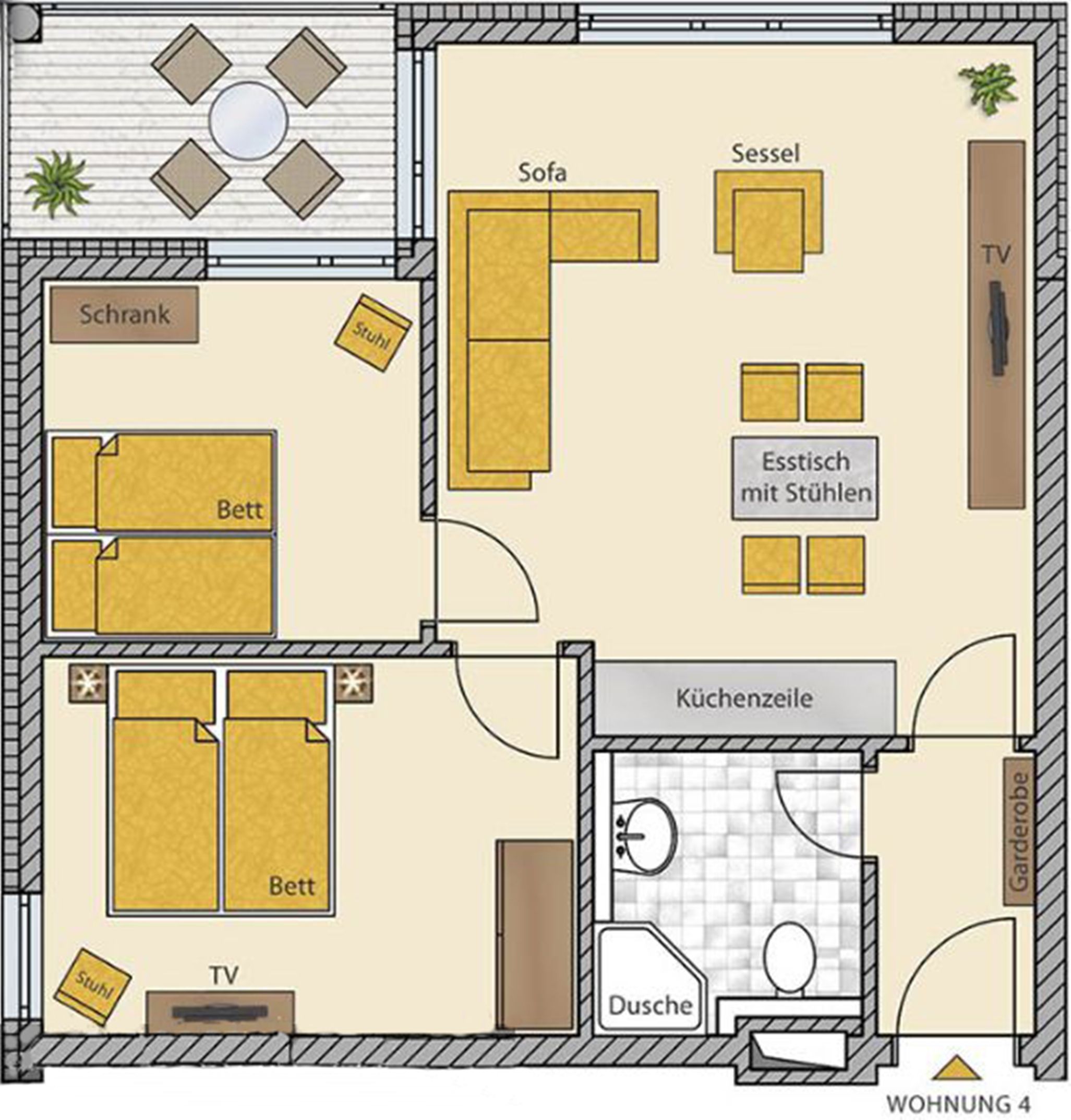 Dieses Appartement ist für bis zu 4 Personen buchbar.