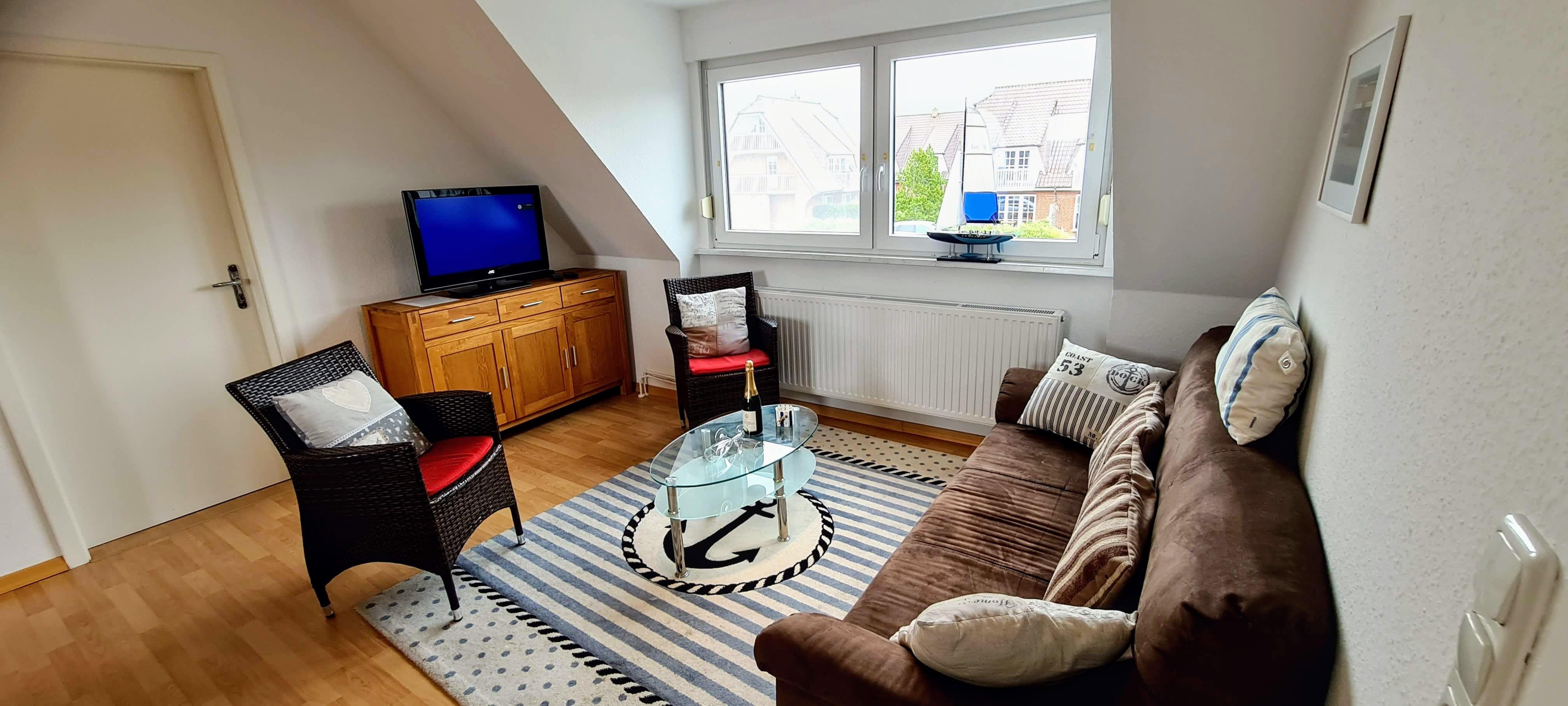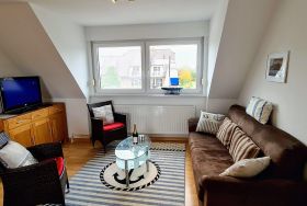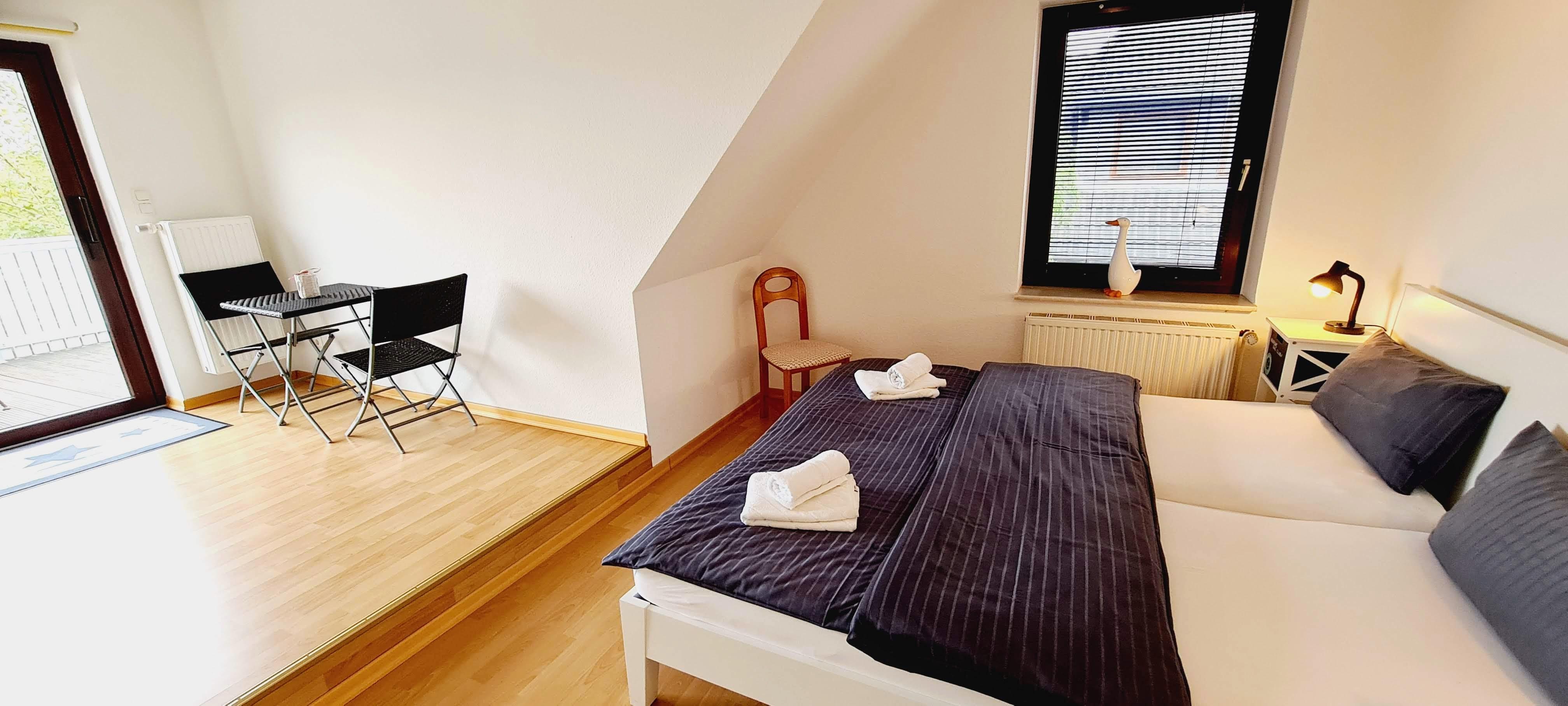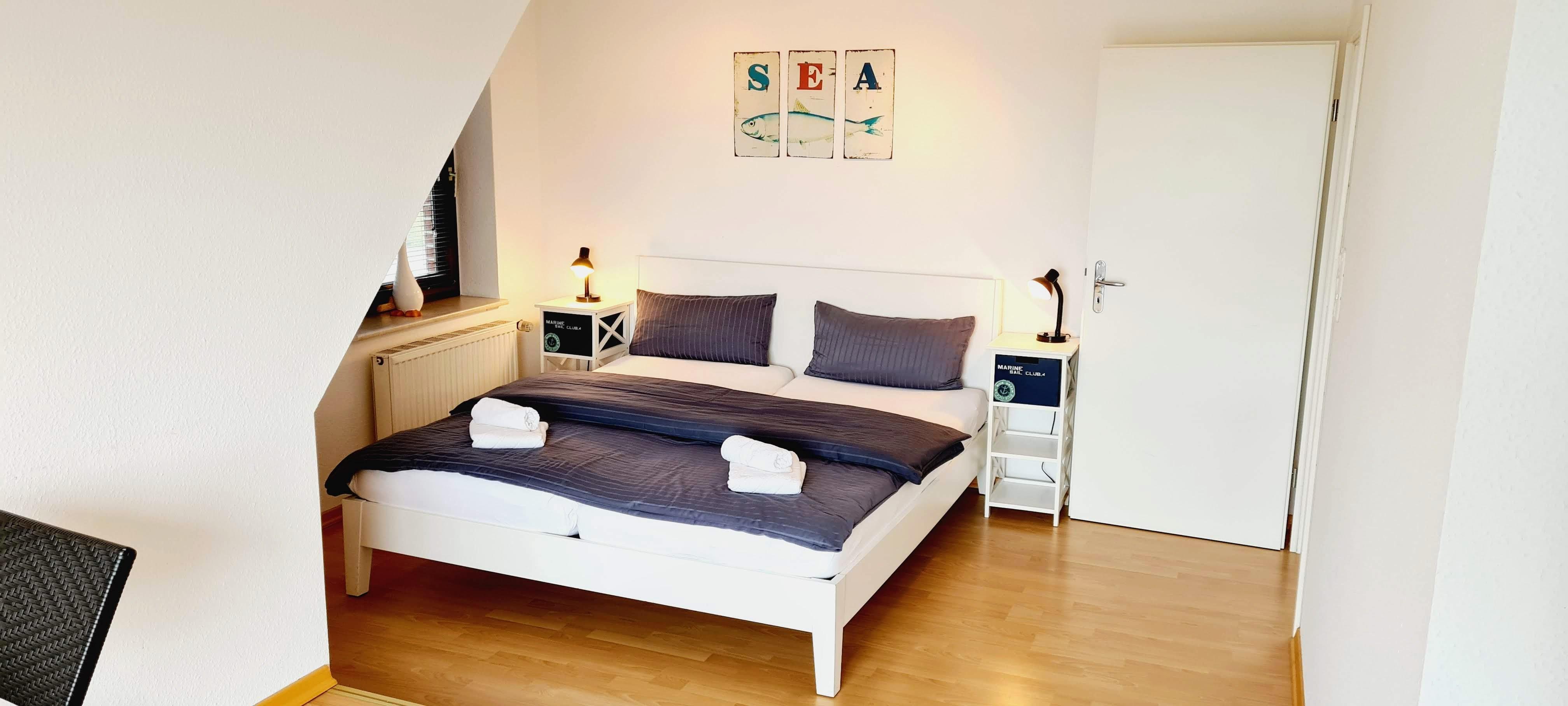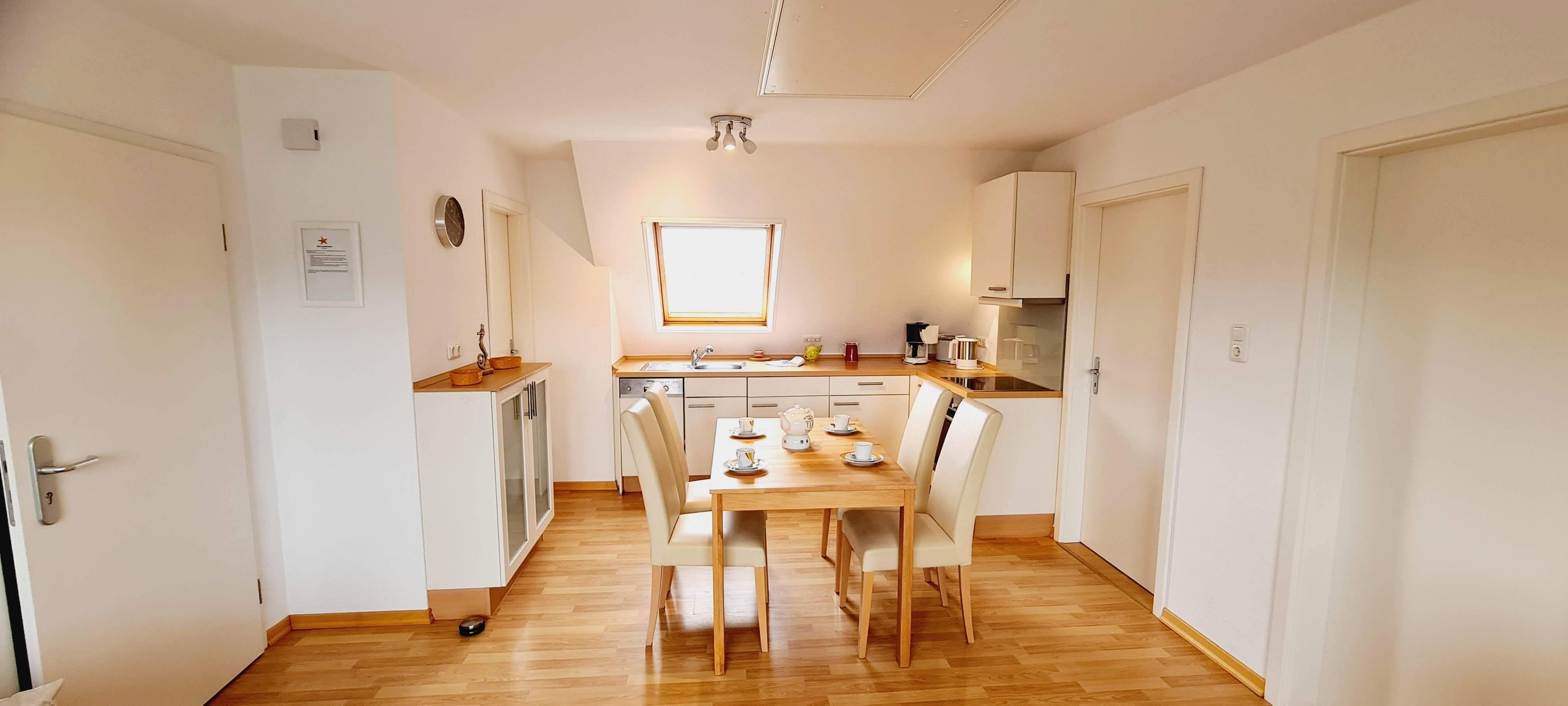 Die gemütliche und stilvoll eingerichtete Ferienwohnung verfügt über 64 m² Wohnfläche und liegt im Obergeschoß. Großzügiger Wohnraum mit angrenzender offener Küche. 2 Schlafzimmer mit je einem Doppelbett, Dusche/WC, Balkon, Garten. WLAN vorhanden