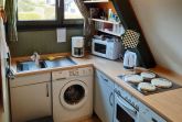 Die Küche ist zur bequemen Selbstversorgung mit allen Annehmlichkeiten, wie z.B. Spülmaschine, 4-Plattenherd, Kühlschrank, Kaffeemaschine, Wasserkocher, Mikrowelle u.v.m. ausgestattet. Geschirr und Bestecke sind ausreichend vorhanden.