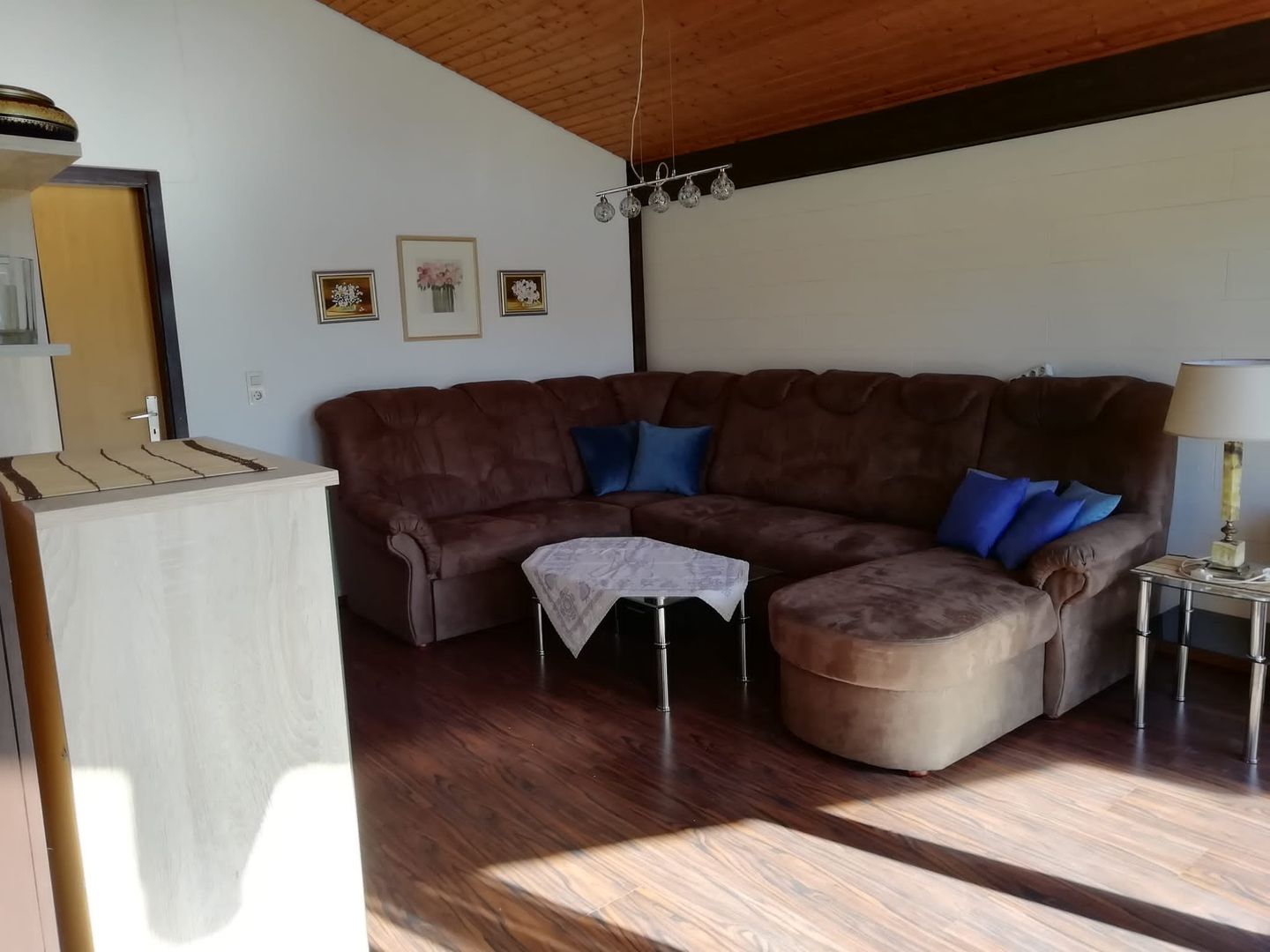 Es hat einen großen Wohnraum mit anschließender Küche und Essecke.