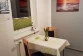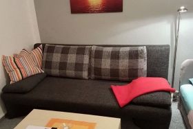 - helles, gemütlich eingerichtetes Wohn-/Schlafzimmer mit einer Doppelbett-Couch, einer Schlafliege für 1 Person, sowie einem Flat-TV mit Sat-Anschluss und CD-Radio