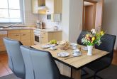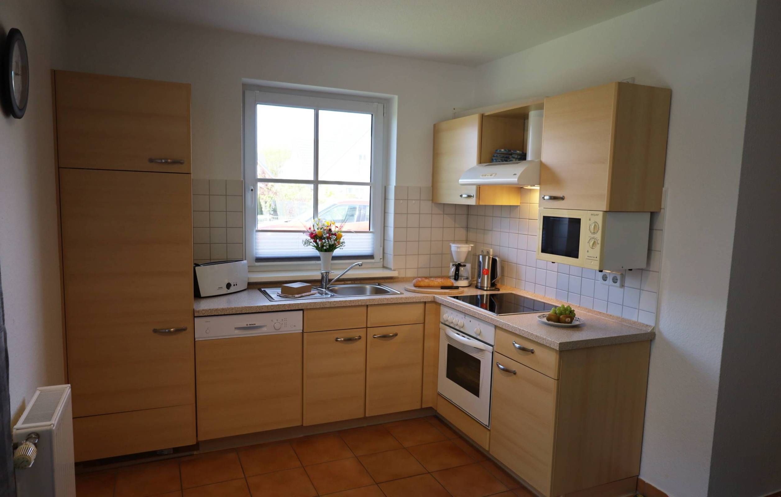 Eine komplett ausgestattete Küchenzeile mit Geschirrspüler, Ceran-Back-Herd, Mikrowelle, Kühlschrank mit Gefrierfach und weiteren nützlichen Geräten wie Kaffeemaschine, Toaster, Wasserkocher etc. steht Ihnen zur Verfügung.