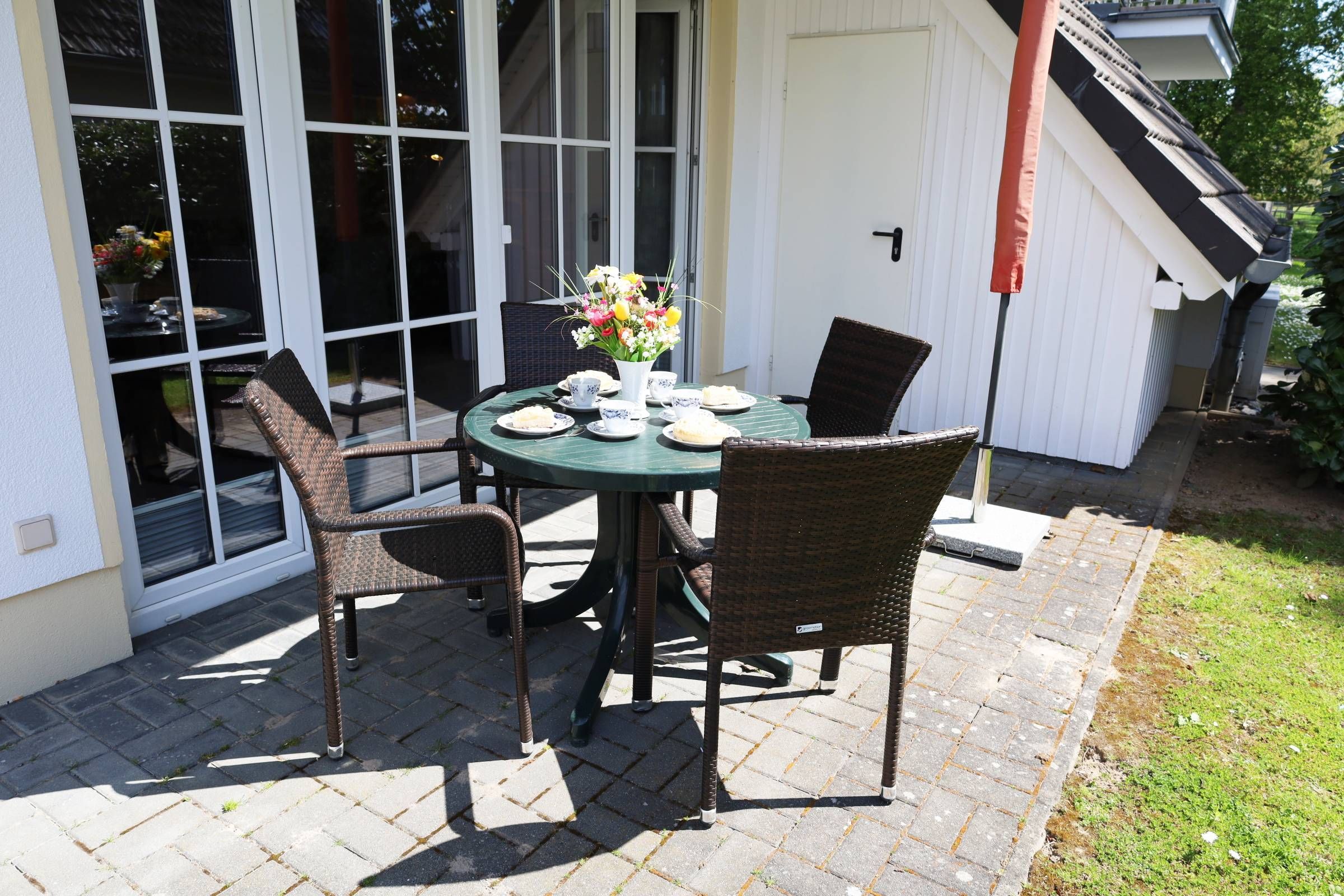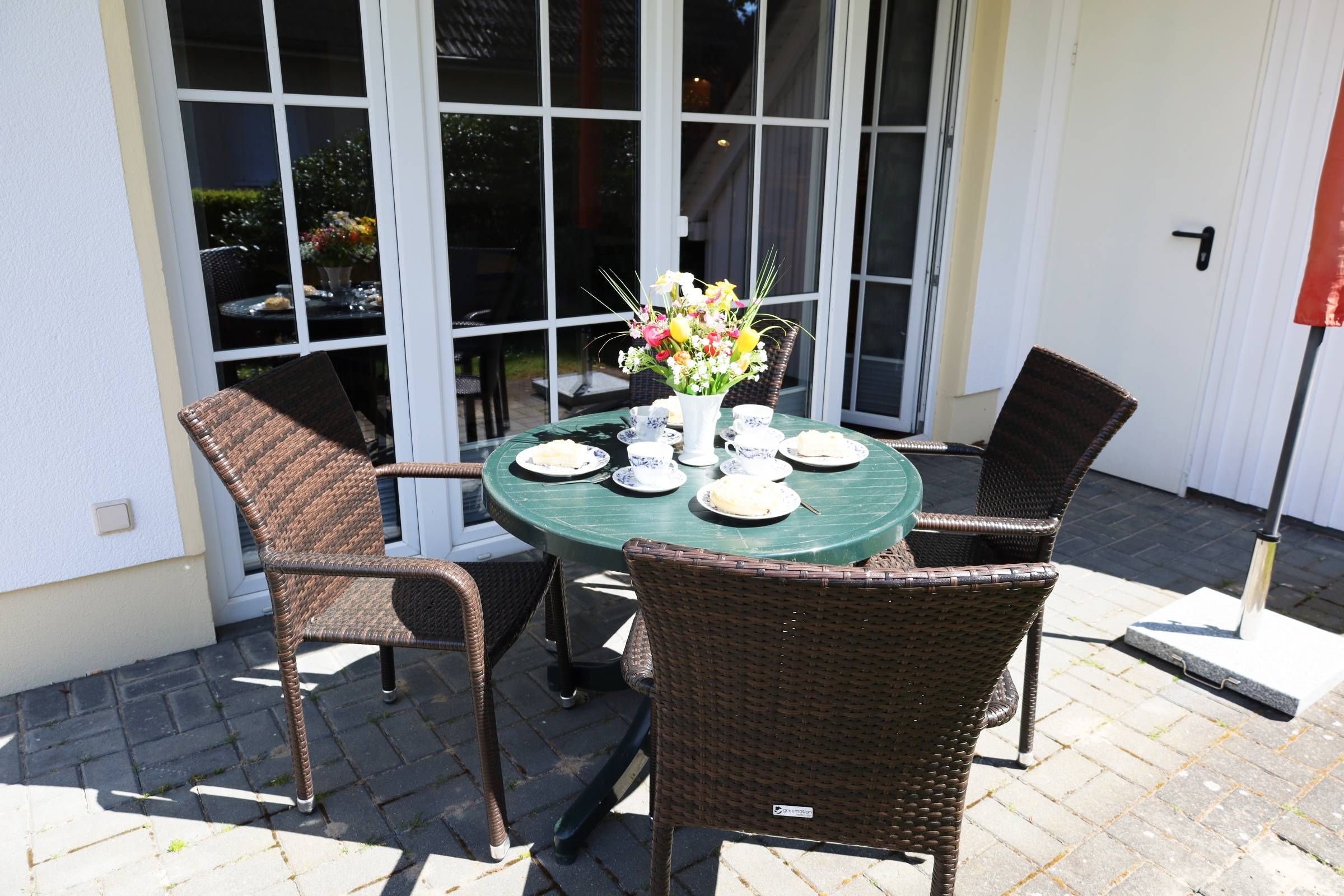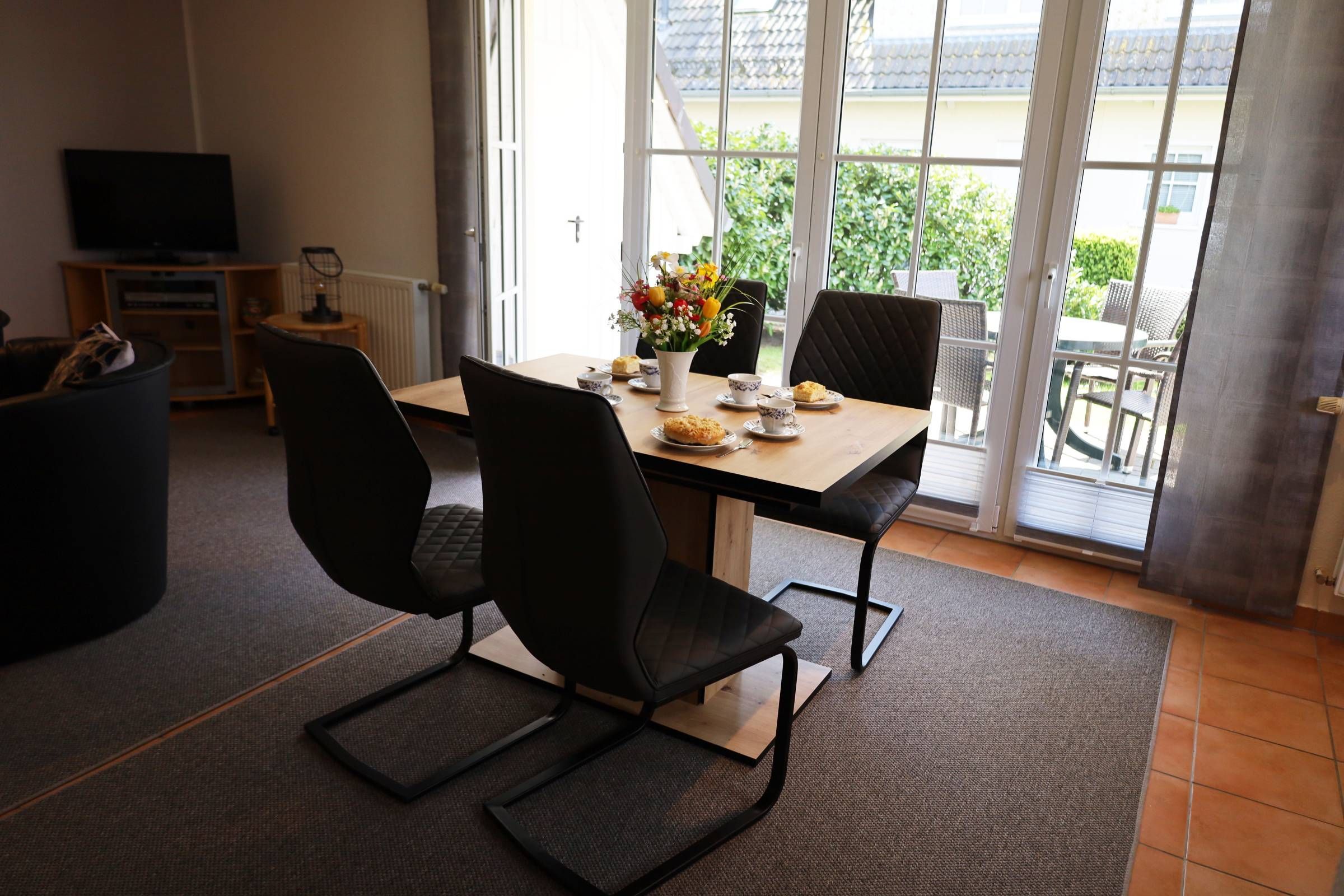 Die gemütliche Sitzgruppe bietet Platz für bis zu vier Personen.