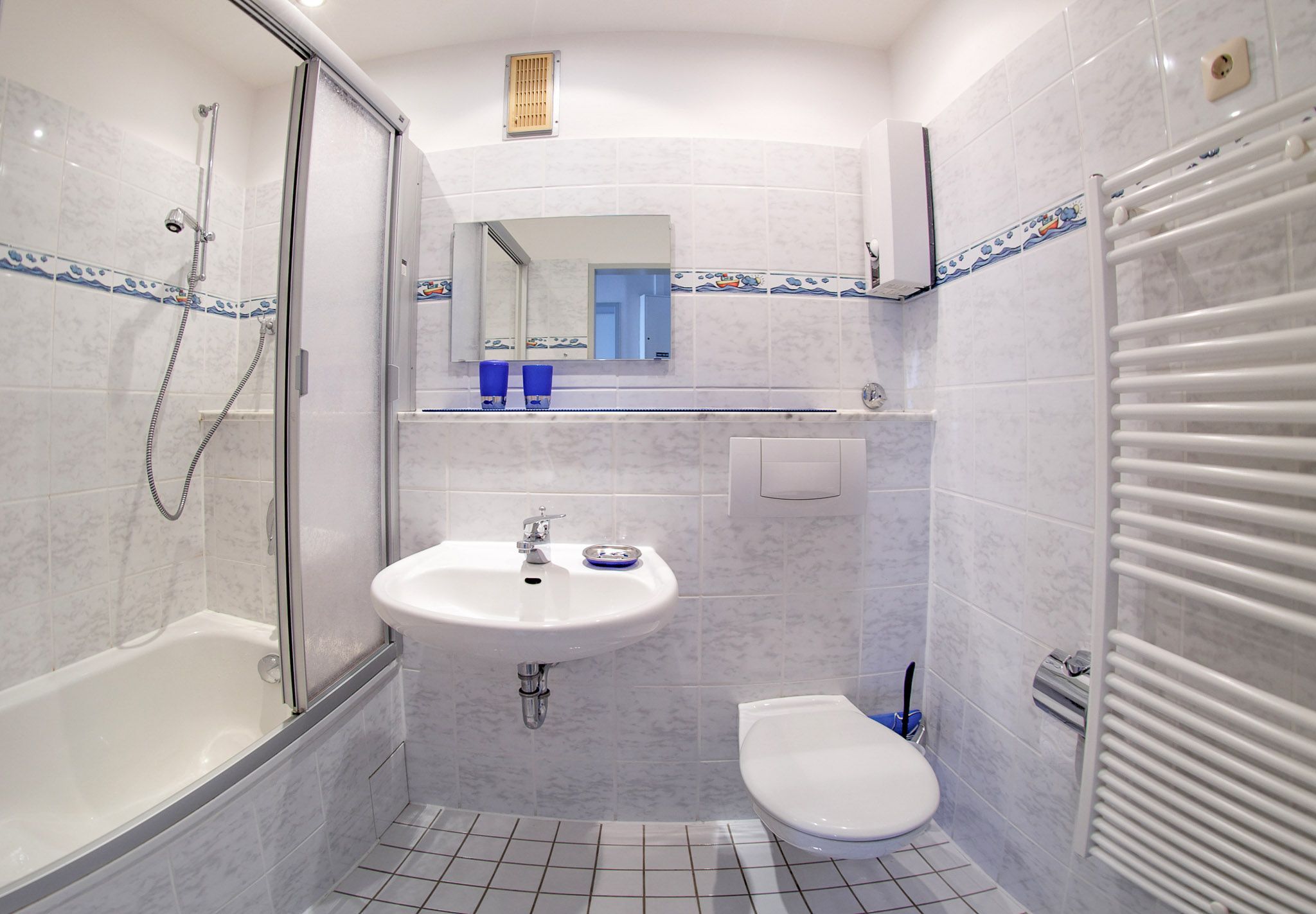 Perfekt für erholsame Tage an der Nordsee. Nach einem erlebnisreichen Tag lädt das Sofa zum Verweilen ein. Dank LCD-Fernseher müssen Sie auch im Urlaub nicht auf Ihre Lieblingsserie verzichten. Kostenloses W-LAN gewährleistet, dass Sie lokale Nachrichten lesen und Urlaubsfotos mit Freunden teilen können. Eine Küche mit 4-Zonen-Cerankochfeld, Mikrowelle sowie Kühlschrank mit Gefrierfach ist im Wohnbereich integriert. Auch vom möblierten Balkon genießen Sie den Blick auf den Weltschifffahrtsweg.