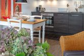 Die moderne Wohnung ist mit schicken Parkettboden ausgestattet. Zur Einrichtung gehören: Eine bequeme Sitzgarnitur (2-Sitzer-Schlafcouch 1,30 x 1,90 m mit durchgehender Matratze, sowie 1 Sessel), einem Essplatz und Flachbild-TV. Die moderne Küchenzeile hat eine Spülmaschine, einen Herd mit Backofen und Ceranfeld mit 4 Feldern sowie einen Kühlschrank mit kleinem Gefrierfach. Kaffeemaschine, Wasserkocher und Toaster gehören selbstverständlich zur Grundausstattung. Das Schlafzimmer hat zwei Einzelbetten je 0,90 x 2,00 m, welche auch zusammengeschoben werden.