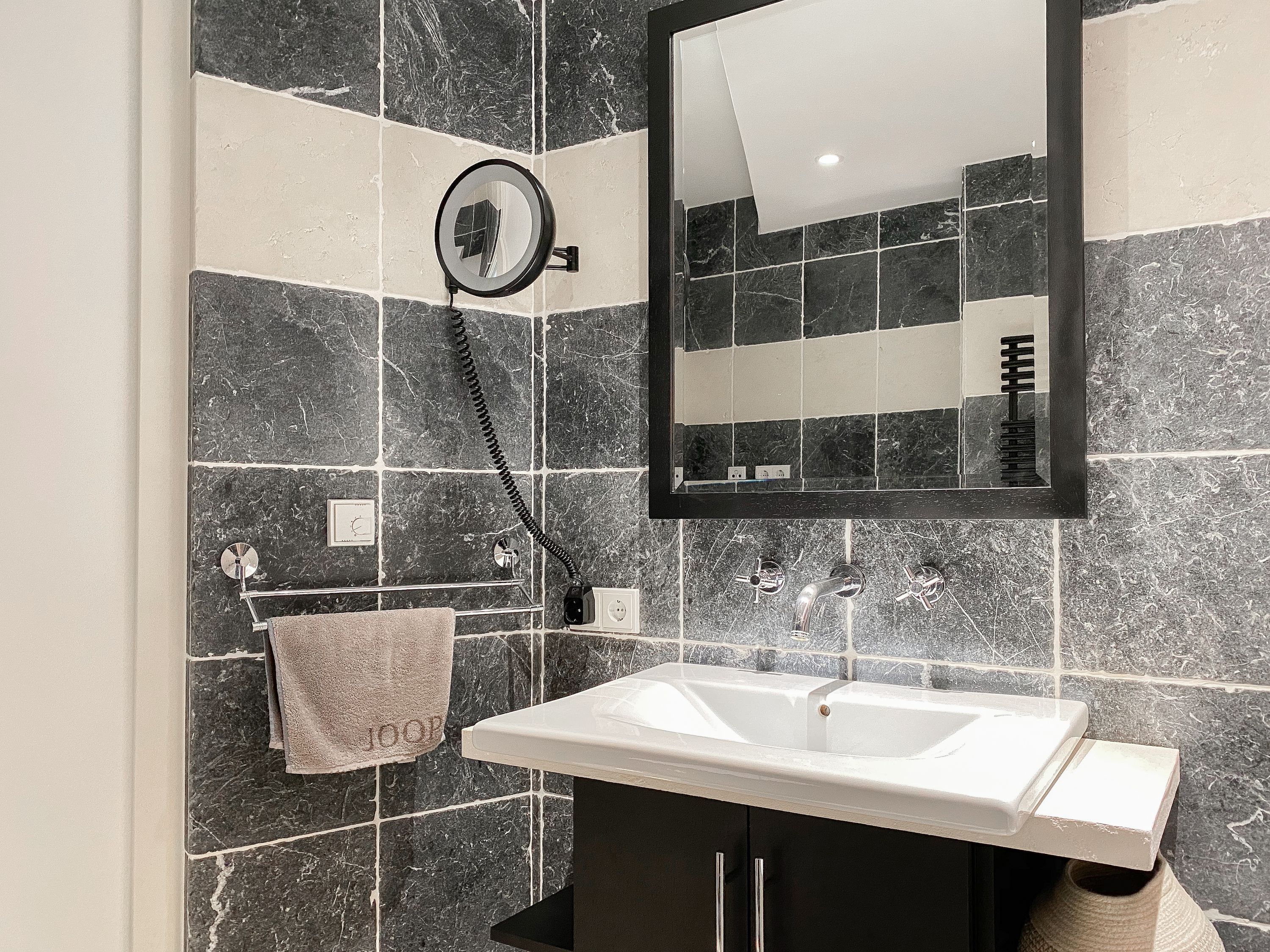 Es erwarten Sie lichtdurchflutete, großzügige Räumlichkeiten auf über 100 qm Wohnfläche und eine riesige, umlaufende Dachterrasse, die von allen Räumen zugänglich ist und mit einem Strandkorb, Gartenmöbeln und Sonnenliegen ausgestattet ist. Genießen Sie die herrliche Aussicht bis auf die Ostsee und Sonne oder Schatten je nach Belieben. Durch die Kombination von anspruchsvollem Design, hochwertigen Materialien und warmen Farben ist es gelungen, eine angenehme Atmosphäre in herrlichem Ambiente zu schaffen. Im 2. Obergeschoss erwartet Sie ein großzügiger Wohn- Essbereich mit Kamin und Ostseeblick. Die anschließende, halb offene Küche ist bestens ausgestattet und verfügt neben einer Frühstücksbar über reichlich Platz für gemeinsames Kochen. Es gibt 2 separate Schlafzimmer mit Doppelbetten (180x200 und 160x200), eines mit großem Kleiderschrank und Verdunkelungsvorhängen, das andere mit einer Kommode, Kleiderständer und Verdunkelungsjalousien sowie 2 hochwertige Bäder. WLAN steht selbstverständlich zur kostenlosen Nutzung zur Verfügung. Ein Fahrstuhl ist vorhanden.