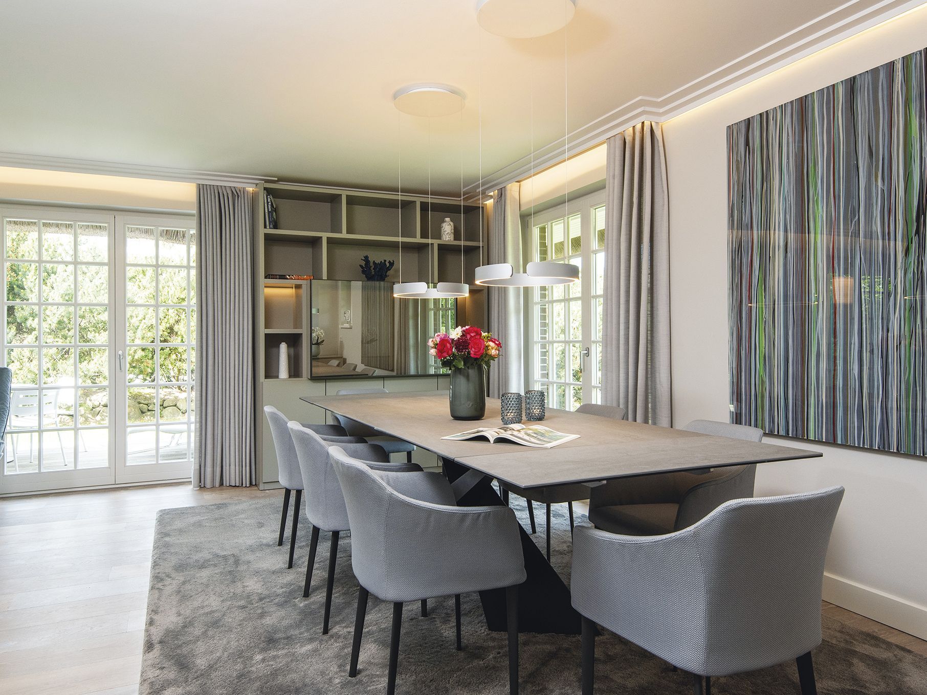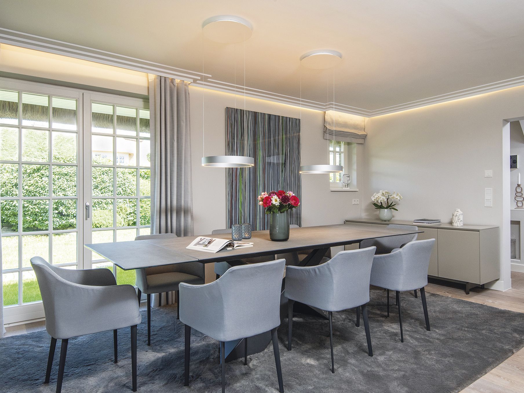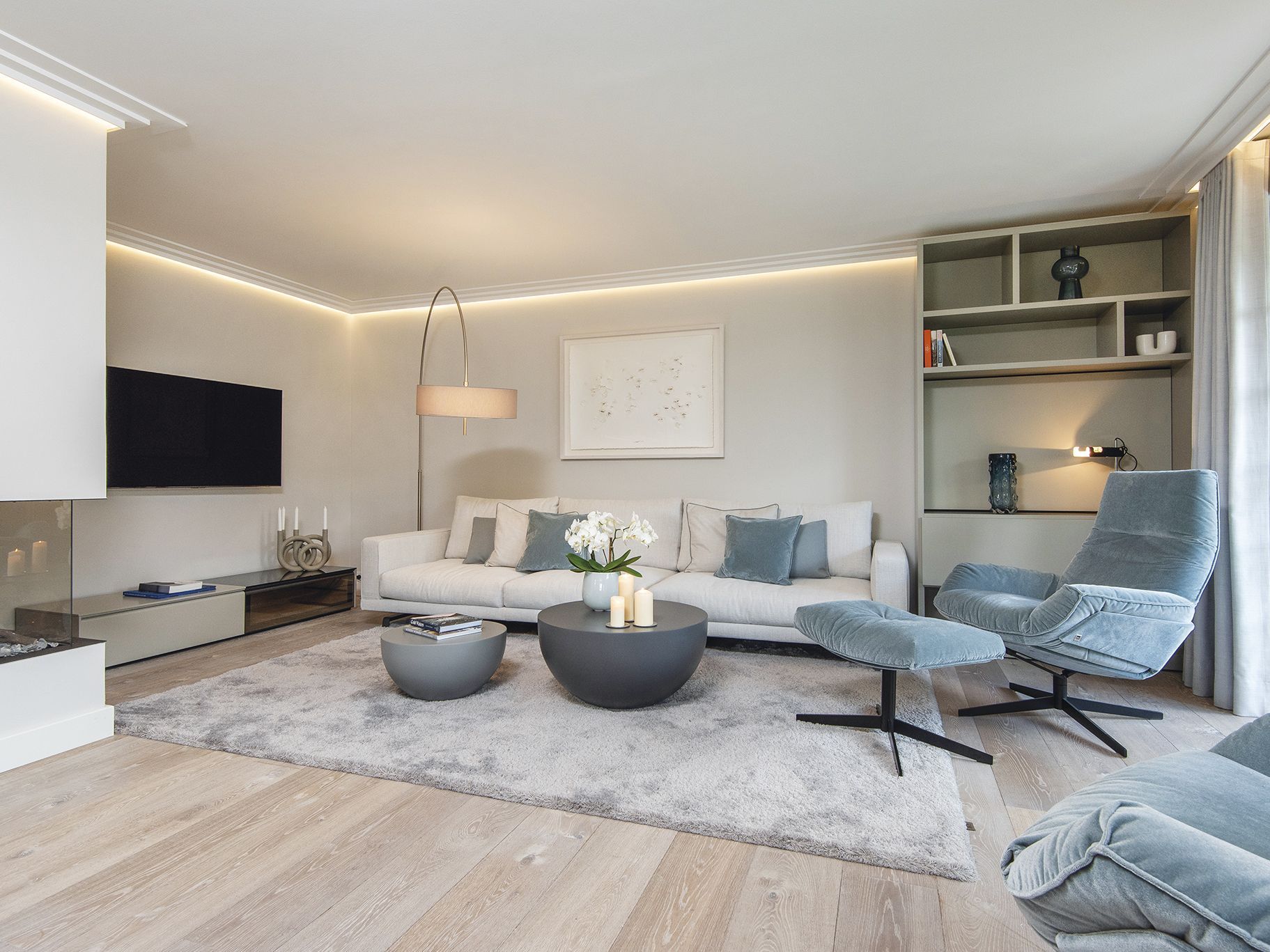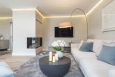 Frisch und luftig ist die Atmosphäre in diesem schönen Hausteil im Süden Kampens. Modernes Ambiente empfängt Sie im Flur. Von hier erreichen Sie den Wohn-Essbereich mit großem Esstisch, bequemem Loungesofa, Kamin und Zugang zur Südterrasse. Indirekte Beleuchtung und ein elektrischer Kamin sorgen für Gemütlichkeit, wie sie das gesamte Quartier erfüllt. Gegenüber die geräumige voll ausgestattete Küche mit Kochinsel, kleinem Essplatz am Tresen und Zugang zur Frühstücksterrasse. Ebenerdig findet sich noch ein modern eingerichtetes Doppelschlafzimmer und ein hochwertiges Bad mit ebenerdiger Dusche und Doppelwaschbecken. Im Obergeschoss erwartet Sie der Masterbedroom für Zwei, sowie ein geräumiges Bad mit Doppelwaschbecken. Über die Treppe ins Untergeschoss finden Sie zwei Doppelschlafzimmer mit Verbindungstür, eines davon mit privater Souterrain-Terrasse und ein weiteres Bad mit ebenerdiger Dusche und Doppelwaschbecken. Das Highlight dieser Etage ist der großzügige Wellnessbereich mit geräumiger Sauna, Erlebnisdusche und gemütlicher Relaxinsel, wo sich alle Widrigkeiten des Nordseewetters bestens aushalten lassen. Dieses schöne Hausteil erfüllt alle (Friesen-) Träume!