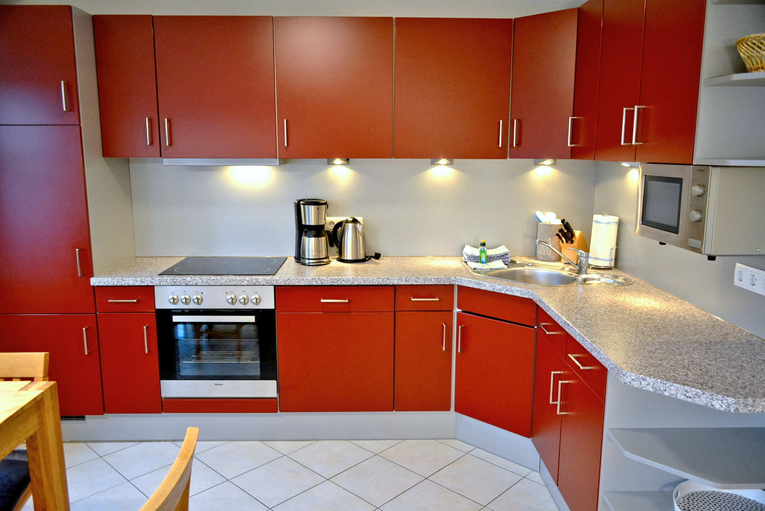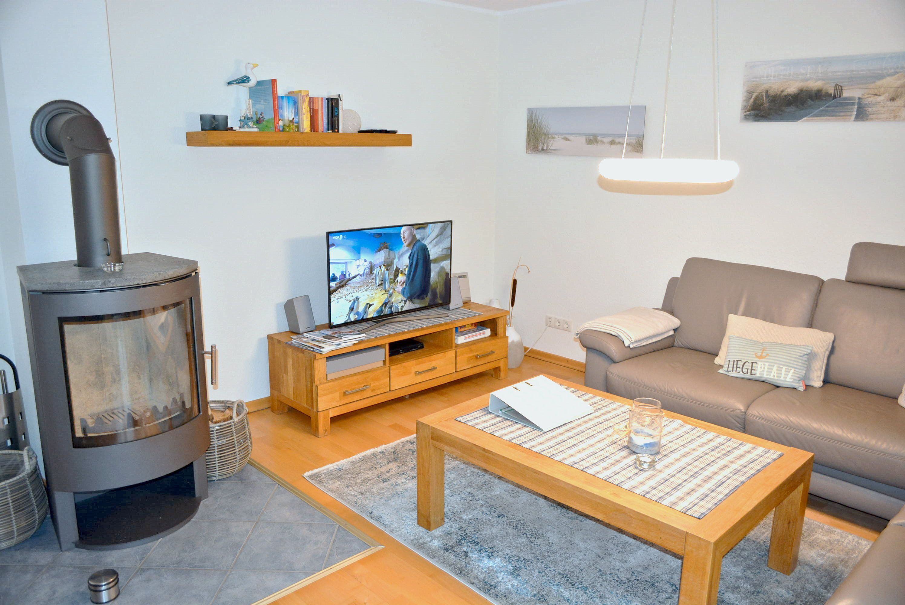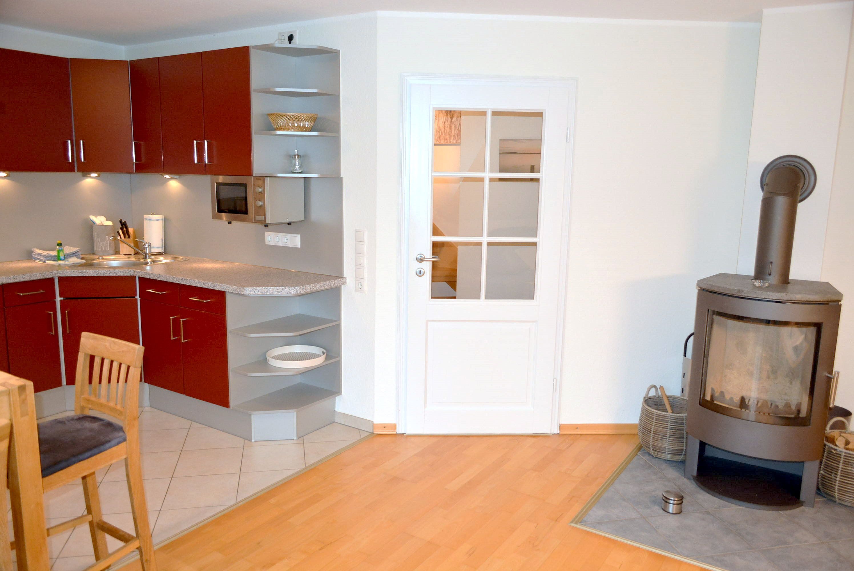 Wohnzimmer: 4 Plattenherd mit Ceranfeld und Backofen, 5 Stühle, Couchtisch, Dunstabzugshaube, DVD-Player, Eckcouch, Einbauküche, Esstisch, Flachbildschirm, Geschirr, Handmixer, Kaffeemaschine, Kaminofen nutzbar exkl. Holz, Kochtöpfe, Küchenwaage, Kühlschrank mit 3* Gefrierfach, Mikrowelle, Raclette Grill, Sat-TV, Spülmaschine, Stereoanlage mit CD-Player, Toaster, TV-Lowboard, Waffeleisen, Wasserkocher