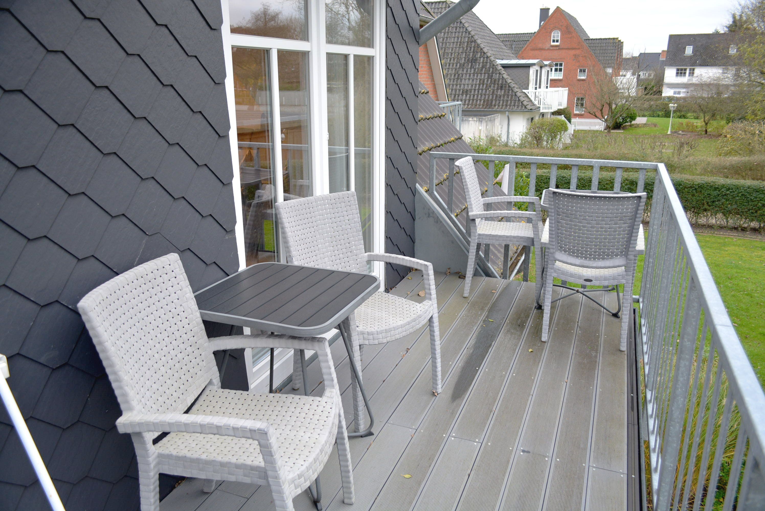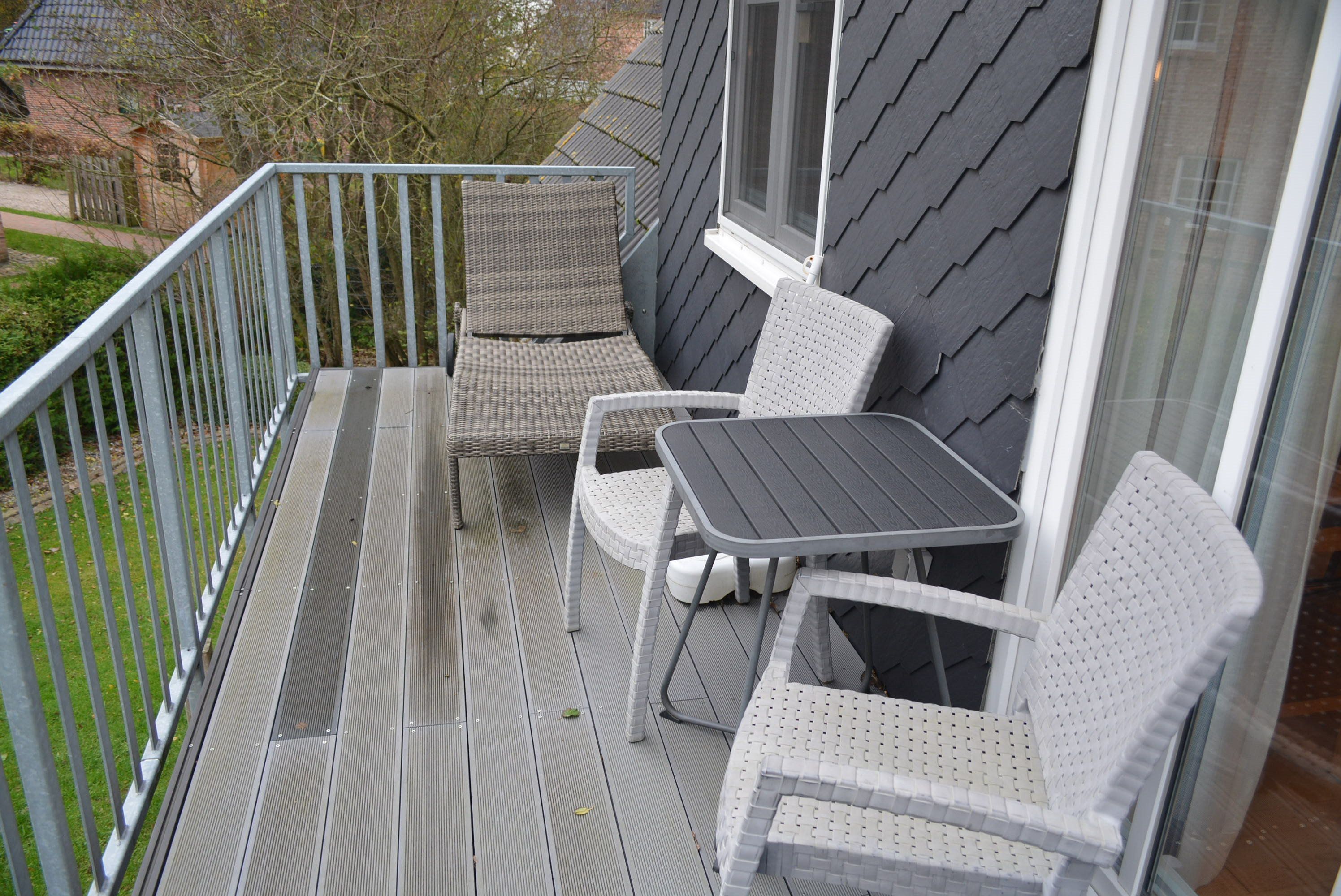 Balkon: 2 Tische, 4 Stühle, Liege, Nord- Südlage, Sonnenschirm