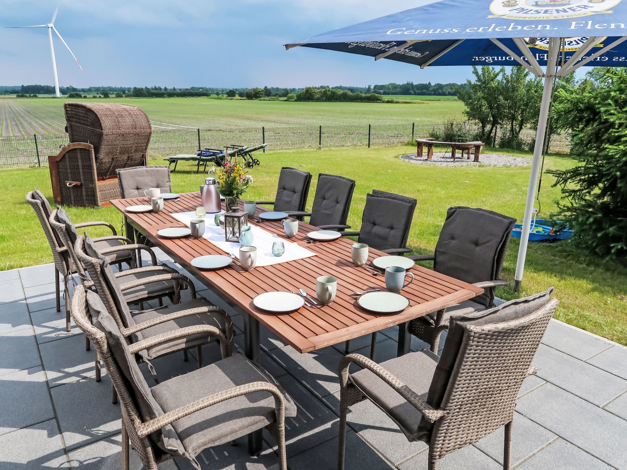 Grosses, gemütliches, komfortables Landhaus Christinental, auf 2 Stockwerken. Bramstedtlund, am Ortsrand, 5 km vom Zentrum von Ladelund, 14 km vom Zentrum von Süderlügum, 34 km vom Meer, 4 km vom See, 34 km vom Strand. Zur Mitbenutzung: Grundstück 1'000 m2, Garten. Grill, Feuerstelle. Im Hause: Sauna. Parkplatz beim Haus. Supermarkt 4 km, Restaurant 4 km, Bäckerei 4 km, Bushaltestelle 900 m, Bahnstation Süderlügum 14 km, Sandstrand Romo 64 km, Grasstrand Dagebüll 34 km. Nahe gelegene Sehenswürdigkeiten: Tondern 24 km, Flensburger Förde 32 km, Schloss Glücksburg 46 km. Bekannte Seen in der Umgebung sind gut erreichbar: Naturbad Ladelund 4 km. Bitte beachten: geeignet für Familien.