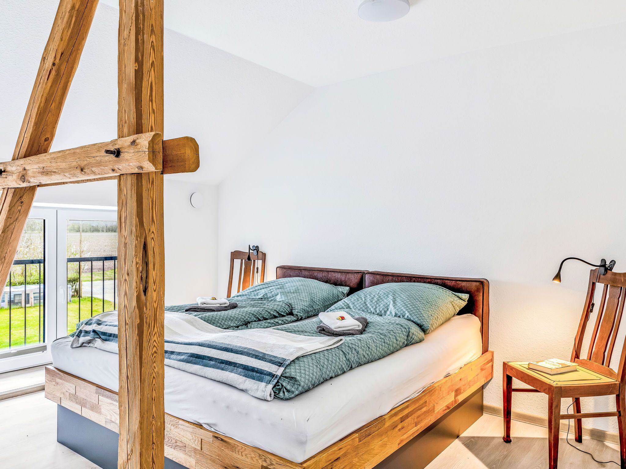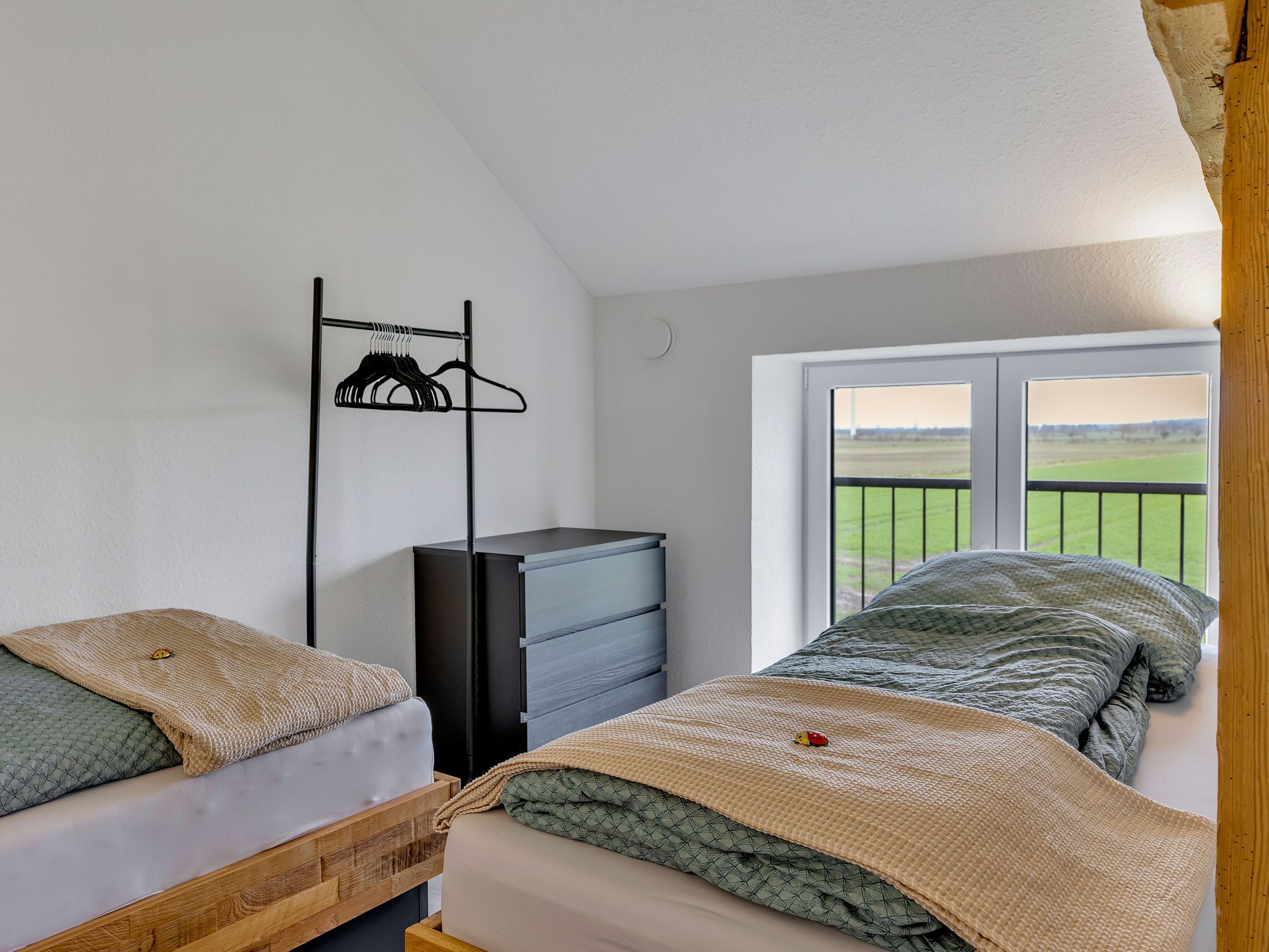 6-Zimmer-Wohnung 150 m2 auf 2 Stockwerken. Geräumig, modern und geschmackvoll eingerichtet: grosses Esszimmer mit Esstisch und Kabel-TV (Flachbildschirm). 2 Zimmer, jedes Zimmer mit 1 Doppelbett (180 cm, Länge 200 cm). Grosse, offene Küche (Backofen, Geschirrspüler, 4 Glaskeramikplatten, Toaster, Wasserkocher, elektrische Kaffeemaschine). Dusche/WC. Holzheizung. Solarstrom. Obergeschoss: grosses Wohn-/Schlafzimmer mit 1 Doppeldiwanbett (180 cm, Länge 200 cm), Kabel-TV (Flachbildschirm). 1 Zimmer mit 1 Doppelbett (180 cm, Länge 200 cm). 1 Zimmer mit 2 Betten (90 cm, Länge 200 cm). Dusche/WC. Komfortable Einrichtung im Landhausstil. Kleine Terrasse. Terrassenmöbel, Gartengrill, Liegestühle. Schöne Panoramasicht auf die Landschaft. Zur Verfügung: Waschmaschine, Wäschetrockner, Sauna. Internet (Wireless LAN, gratis). Bitte beachten: Nichtraucher-Unterkunft. Maximal 2 Haustiere/Hunde erlaubt. Buchungen sind nur zu touristischen Zwecken erlaubt.