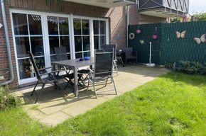 Die Wohnung besitzt eine eingezäunte S/W Terrasse und einem kleinen eigenen Garten. Vom Garten gibt es einen Zugang zum großen Gemeinschaftsgarten.