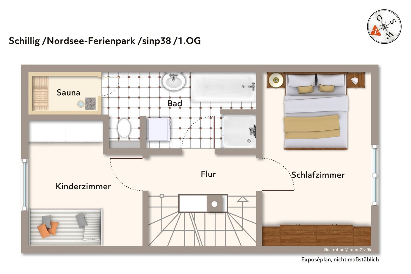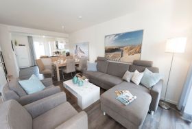 Das 107 qm große und komfortable 5-Zimmer-Ferienhaus ist für 6 Personen geeignet. Besonders hervorzuheben sind die wunderschöne Terrasse in Südlage direkt am Wasserlauf sowie der überdachte Balkon in nördlicher Lage zum Meer und zum Deich gelegen. Das geschmackvolle Apartment verfügt überdies über eine eigene Sauna und einen Kamin.