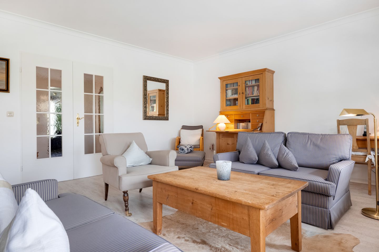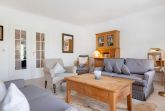 Wohn-/Eßbereich: großzügiger Wohnraum mit gemütlicher Sitzecke bestehend aus zwei Couchen, 2 Sesseln, Fußhocker, Korbstuhl, eckiger Eßtisch mit sechs Stühlen