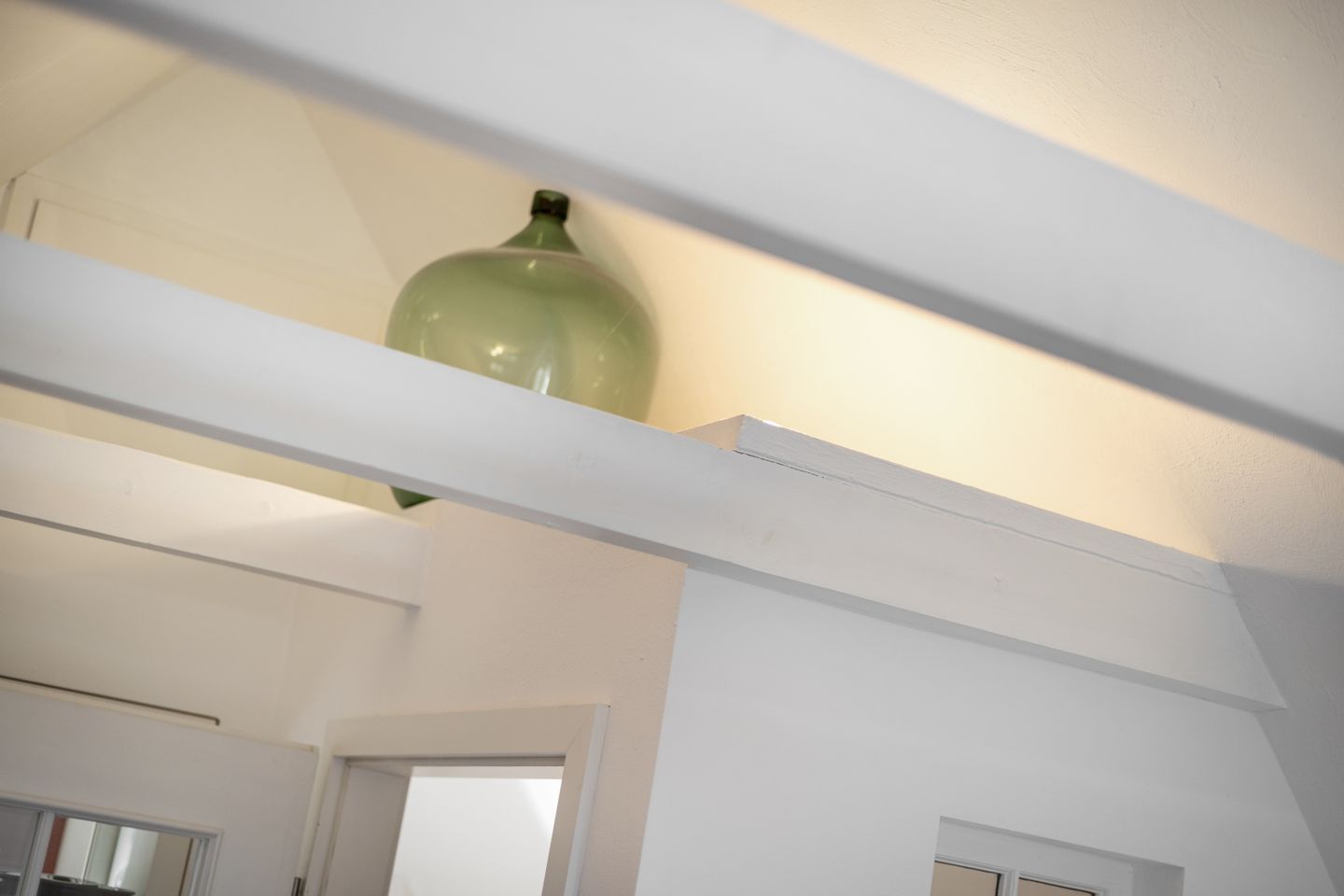 Das Appartement im Obergeschoss im reetgedeckten Haus mit ca. 50 m² Nutzfläche.