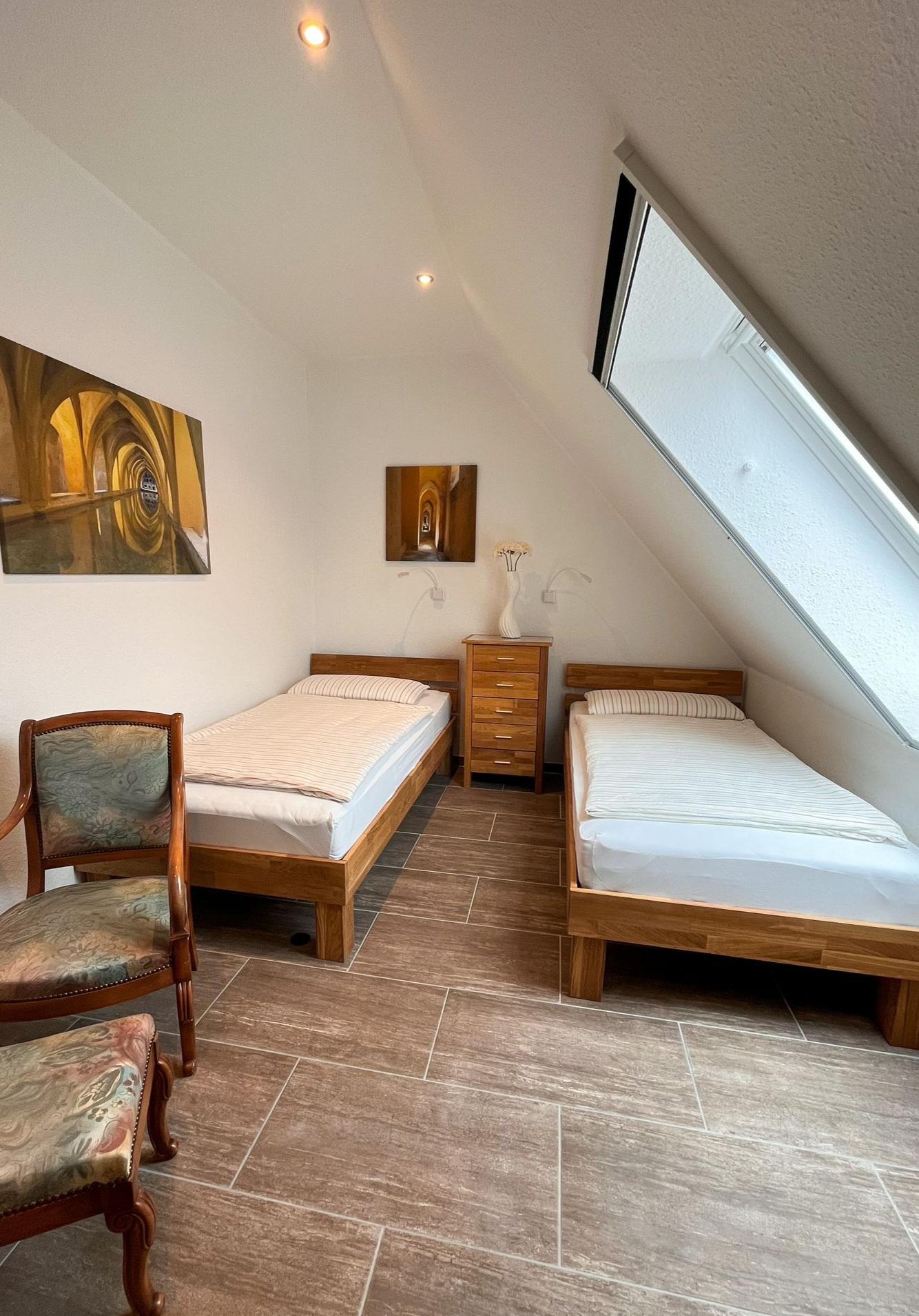 Unsere 95 Quadratmeter großen Räumlichkeiten befinden sich im 2022 ausgebauten Dachgeschoss unseres neuen Einfamilienhauses und sind über eine separate Außentreppe zu erreichen.