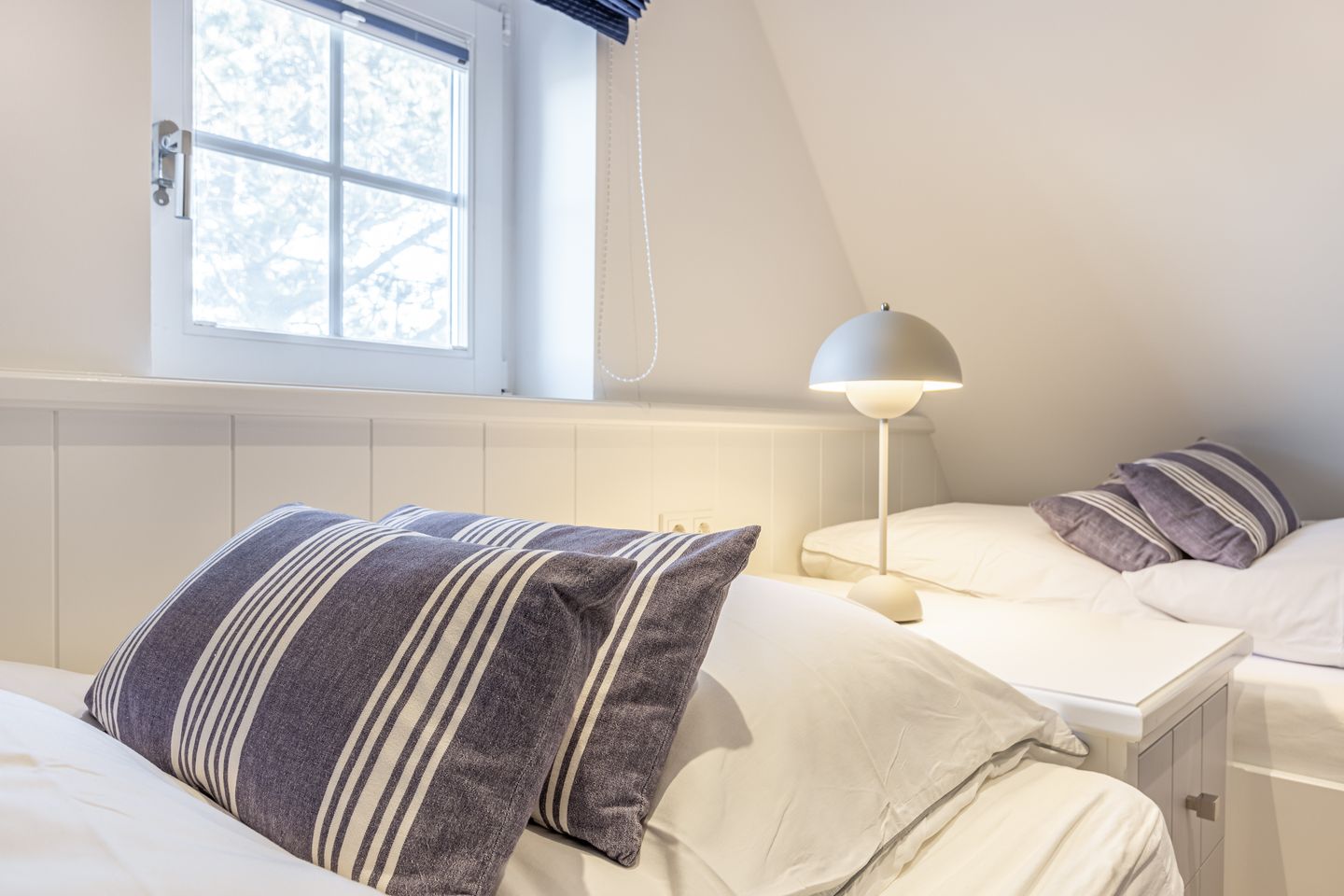 Das gesamte Dachgeschoss des Domizils wurde Anfang 2022 neu gestaltet. Dort erwarten Sie zwei weitere Räume mit hochwertigen Einbauten. Hiervon ist einer mit einem Doppelbett und einem Flatscreen-TV ausgestattet und der andere Raum mit zwei Einzelbetten.