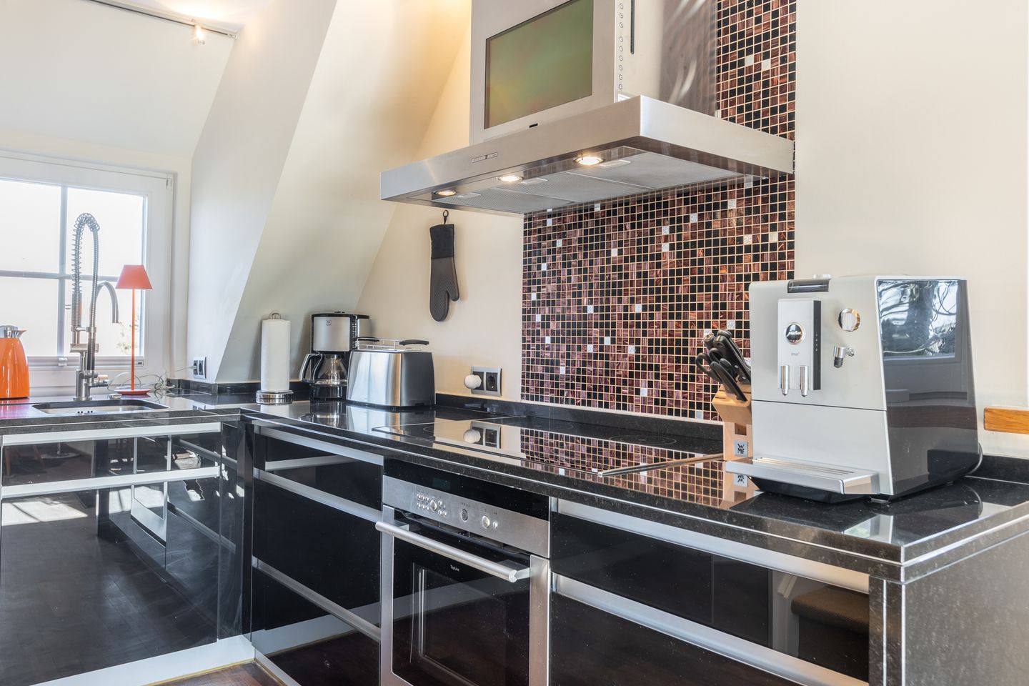 OG: Wohnraum mit Flatscreen-TV, Radio, W-Lan, Essbereich, offene Küche mit Backofen-Microwellen-Kombi, Induktionsherd, Geschirrspüler, Filterkaffeemaschine, Jura-Vollautomat, Weinkühlschrank, Badezimmer mit Dusche, Whirlpool-Badewanne und WC, Balkon mit Balkonmöbeln, Waschtrockner