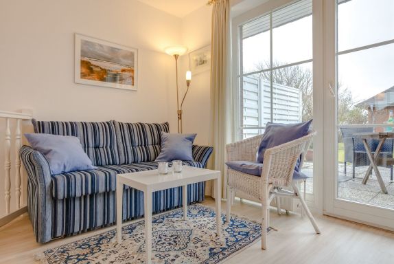 EG: Wohnraum mit Flatscreen-TV, CD-Player, DVD-Player, Radio, Hifi-Anlage und W-LAN, Küchenzeile mit Geschirrspülmaschine, Mikrowelle und Kaffeemaschine, Südterrasse mit Strandkorb (möbliert ca. April bis Oktober)