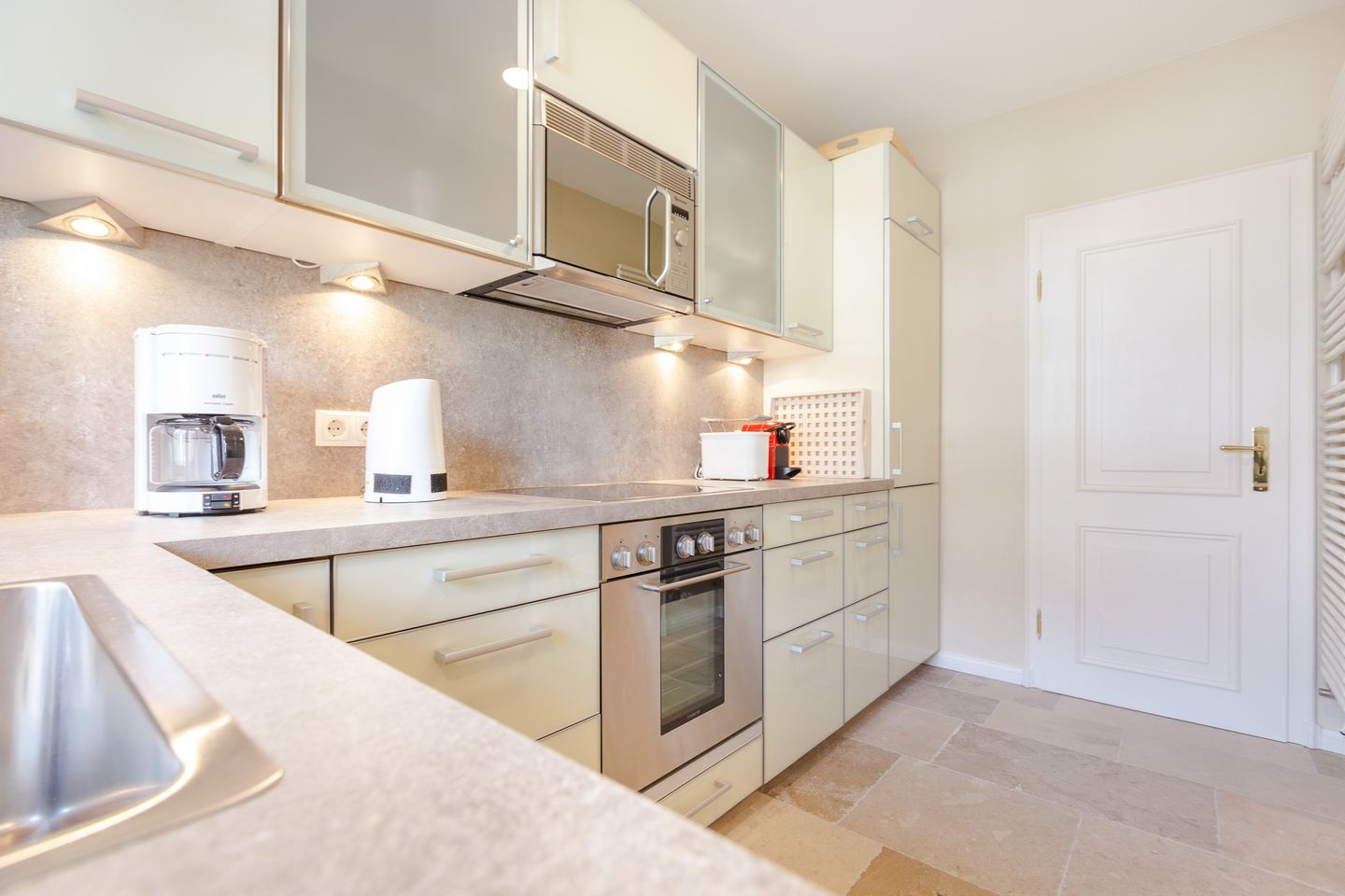 EG: Großzügiger, lichtdurchfluteter und hochwertig gestalteter Wohnraum mit gemütlicher Sitzecke. Loewe-Flat-TV, Bose-Soundsystem und WLAN. Schönes Gäste-WC mit Dusche. Separate Küche mit Microwelle, Backofen, Kaffeefiltermaschine und Geschirrspüler. Sehr schöne Süd-Terrasse mit Gartenmöbeln und Strandkorb (ca. von April-Oktober) mit weitläufigem, hübsch eingewachsenen Grundstück.