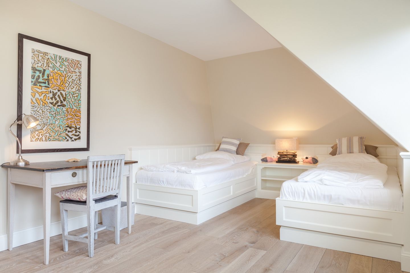 OG: Großzügiger Masterbedroom mit Doppelbett (ca. 2x2m) und Flat-TV. Bad mit WC und Badewanne/integrierte Duschmöglichkeit. Ein weiteres Schlafzimmer mit getrennten Betten (je 0,9x2m) empfängt Sie ebenfalls im Obergeschoss.
