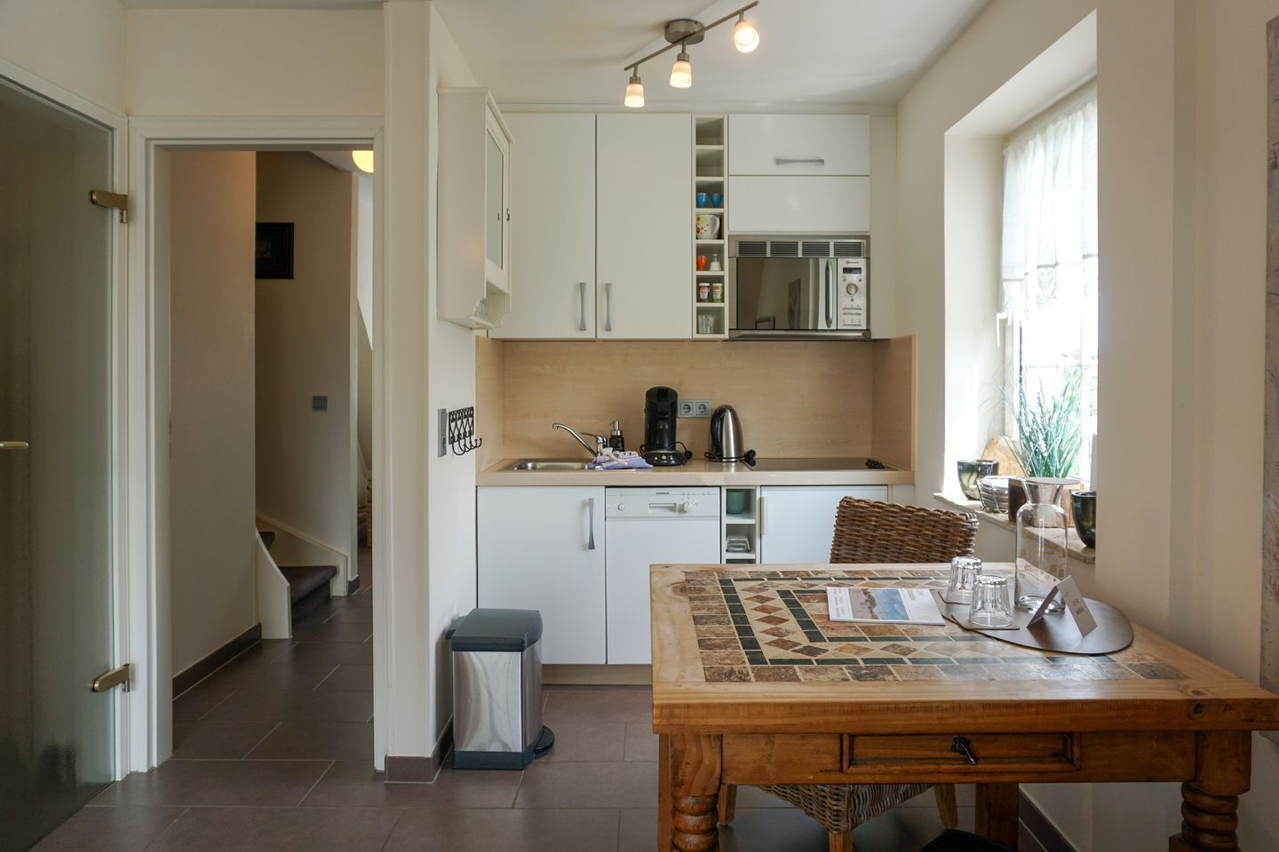 OG: heller Wohnraum mit Kabel-TV, integrierte Küche mit Backofen, Ceranfeld, Spülmaschine, Senseo Kaffeemaschine und Mikrowelle, Badezimmer mit Dusche/WC, zusätzlicher kleiner Raum, kleiner Süd-Balkon