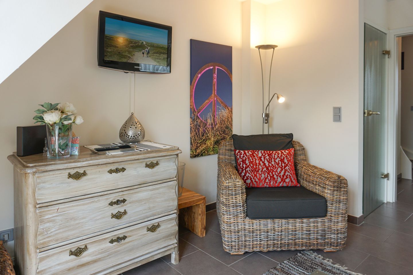 In ruhiger Lage nahe des Strandes in Wenningstedt erwartet Sie dieses Appartement mit einer geschmackvollen und gemütlichen Einrichtung. Der Hauptbereich der Wohnung besteht aus einem Couchbereich, einem Esstisch für zwei Personen und einer kleinen, offenen Küche, die Ihnen alle Möglichkeiten gibt, sich im Urlaub ein leckeres Essen zuzubereiten.