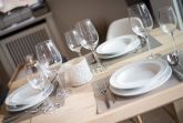 Obergeschoss: Wohnraum mit Flatscreen-TV, CD-Player, Telefon und Radio, offene Küche mit Geschirrspüler, Backofen, Induktionsherd, Filter-Kaffeemaschine, Nespresso-Maschine, Balkon mit Gartenmöbeln, Schlafzimmer mit Flatscreen-TV, Tageslichtbadezimmer mit Dusche und WC, Waschmaschine und Trockner